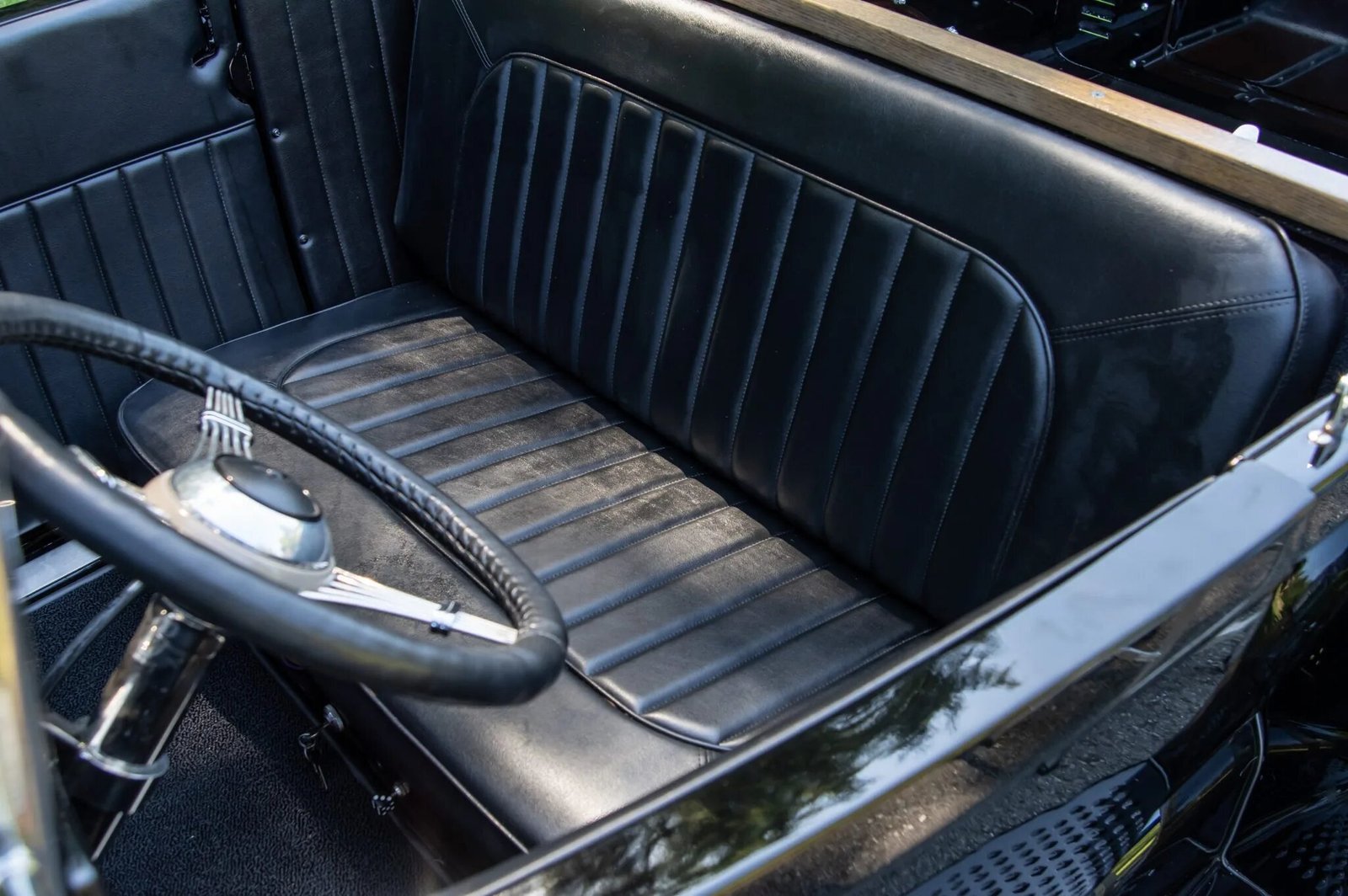 Power is sent to the rear wheels through a floor-shifted three-speed manual transmission have been sourced from a 1939 Ford.