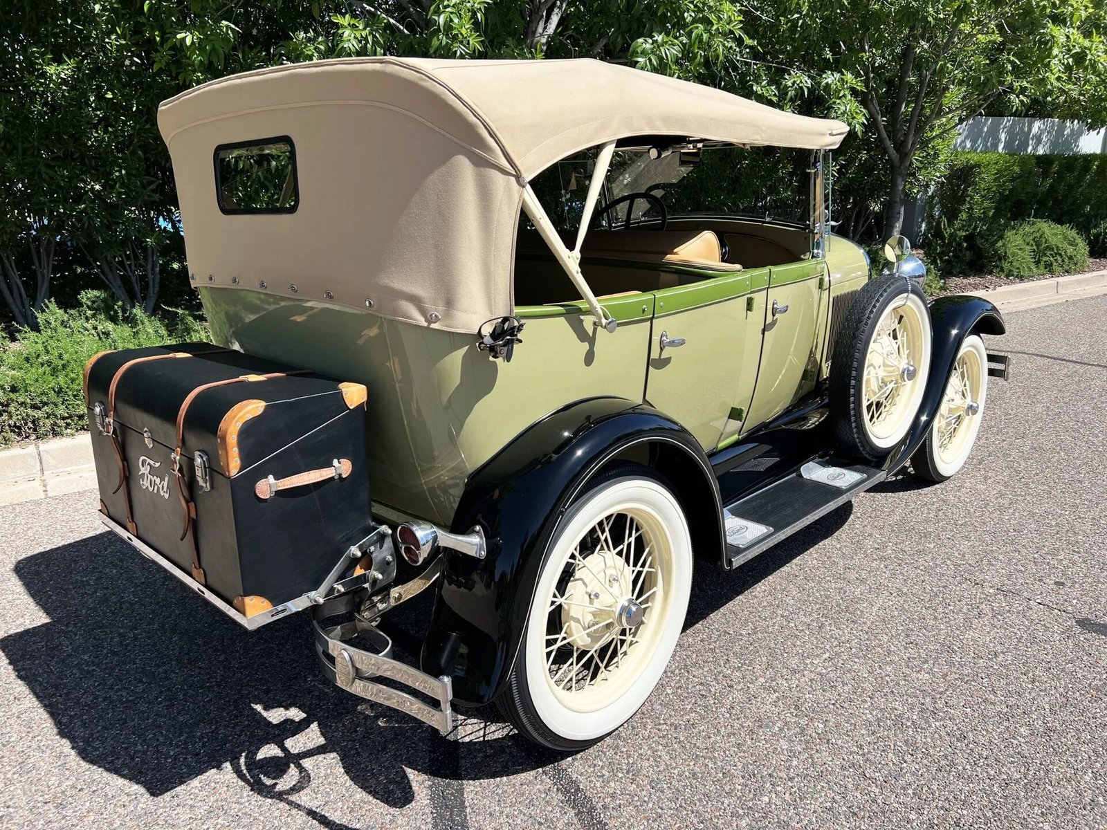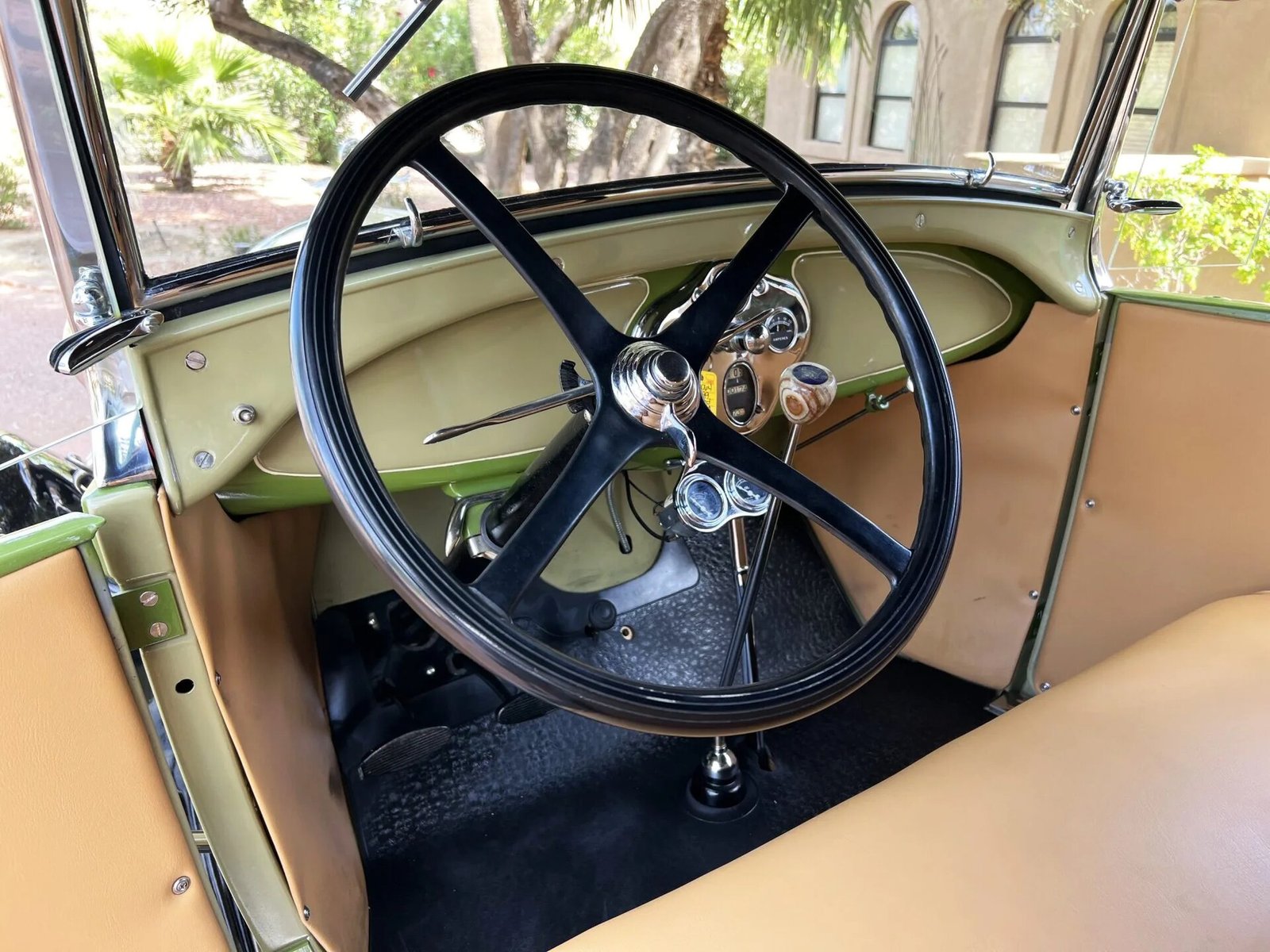 The four-door Phaeton bodywork was repainted in its current two-tone green with black fenders and features cream pinstripes.