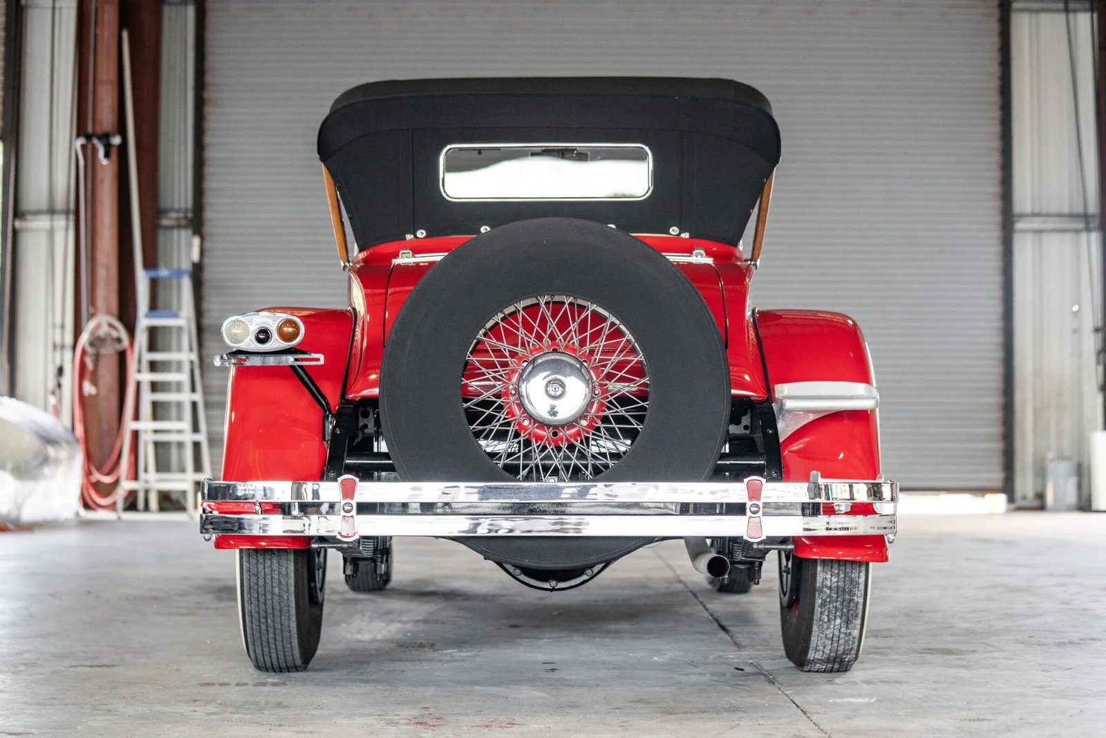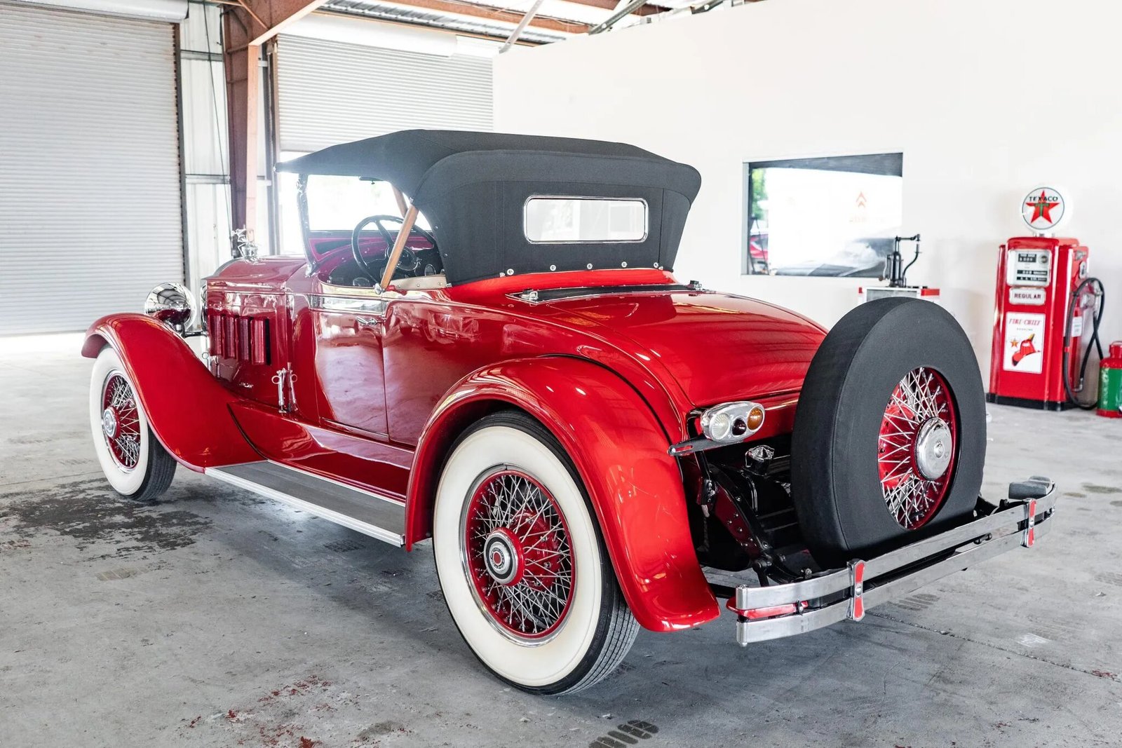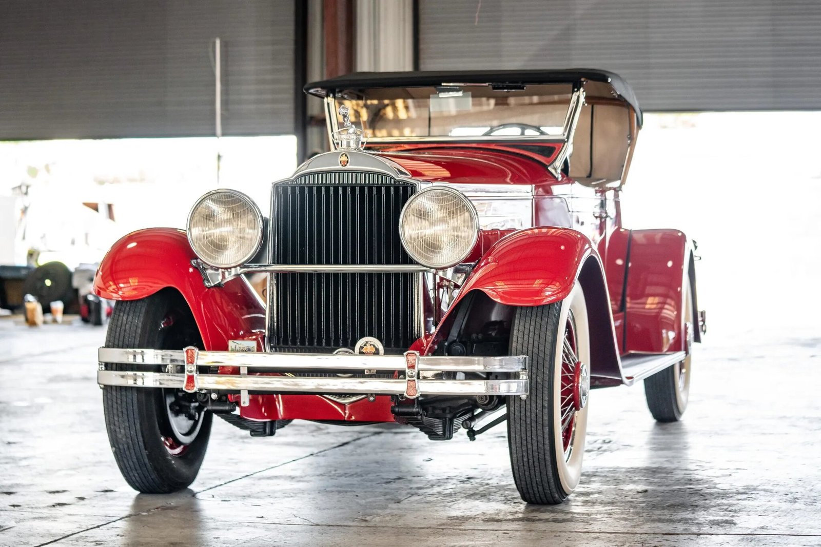 This 1929 Packard Eight is one of 70 Series 626 Speedster examples produced for the model year. Chassis 166984 features roadster bodywork and was delivered new to Carlyle Nibley, Inc. It underwent a multi-year refurbishment that was completed in 2012 before being shown at the 2013 Pebble Beach Concours d’Elegance. The car is finished in Crimson Red over tan Connolly leather upholstery, and power comes from a 384.8ci L-head straight-eight paired with a three-speed manual transmission. Equipment includes mechanically actuated four-wheel drum brakes, 20” painted wire wheels with stainless steel spokes, a rear-mounted spare, a Goddess of Speed radiator mascot, a black convertible top, and a rumble seat. This Packard Speedster is now offered on dealer consignment with factory literature, refurbishment photos and records, Pebble Beach Concours d’Elegance memorabilia, and a clean title.