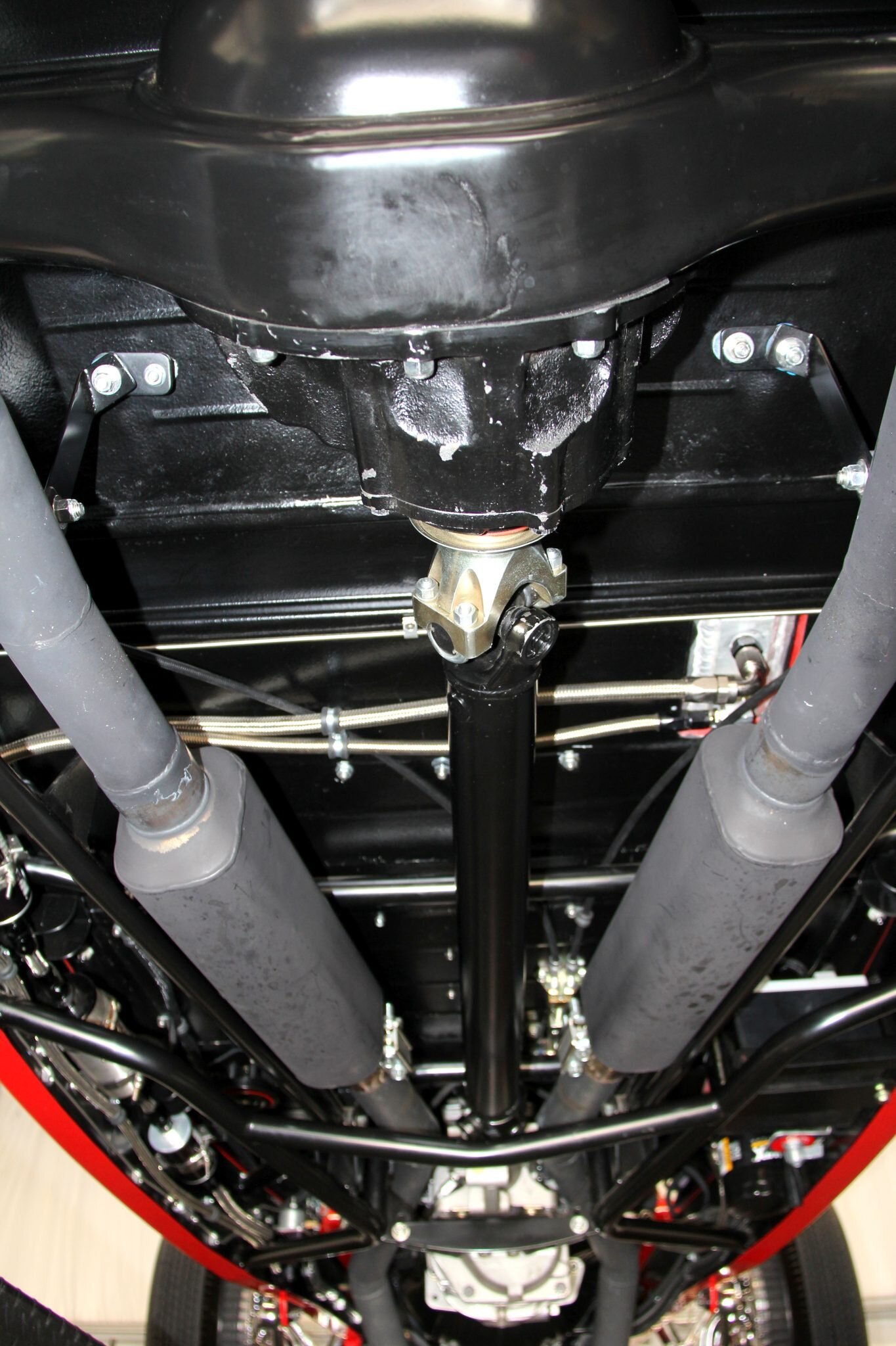 A Corvette master cylinder and stainless-steel lines are also installed.