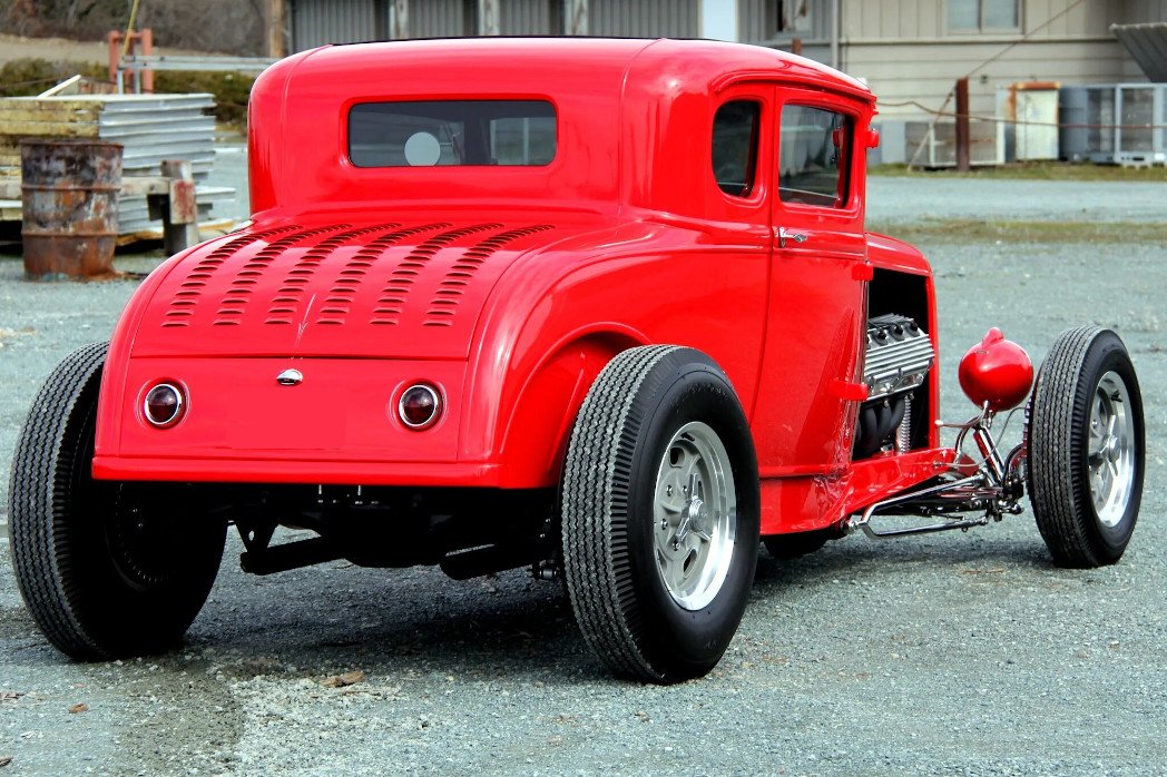 This 1931 Ford Model A is the product of a one-year build that was completed in 2020. The car is finished in red over a black leather tuck-and-roll interior and is powered by a rebuilt 392ci Chrysler V8 paired with a Tremec five-speed manual transmission. Features include an all-steel body with a 4″ chop, a pinched frame, a Ford 9″ rear end, a limited-slip differential, Halibrand-style alloy wheels, and front disc brakes as well as Hilborn electronic fuel injection, a full-flow oiling system, MSD electronic ignition, and a big-block Chevrolet water pump with an aluminum crossover.