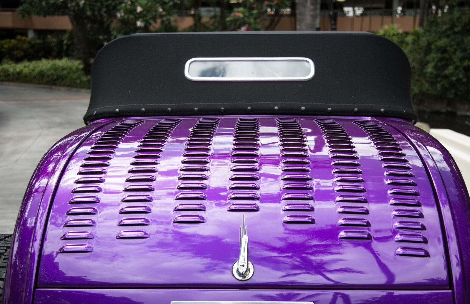 The hood and trunk lid have been hand-louvered, and the engine side covers feature custom cutouts for the valve covers and exhaust.