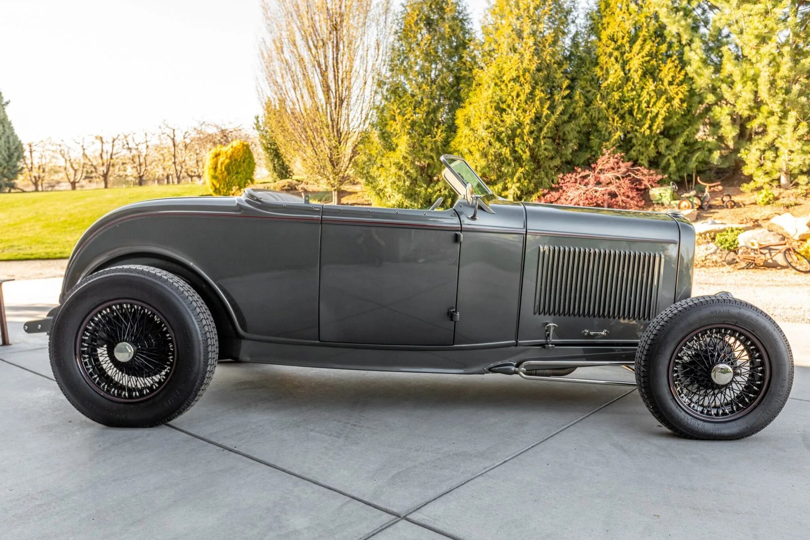 This Ford-style “Rodman” highboy roadster was built by Rod Palmer of Arizona Street Rods in the 1990s and features a Wescott fiberglass body and a custom-built chassis.