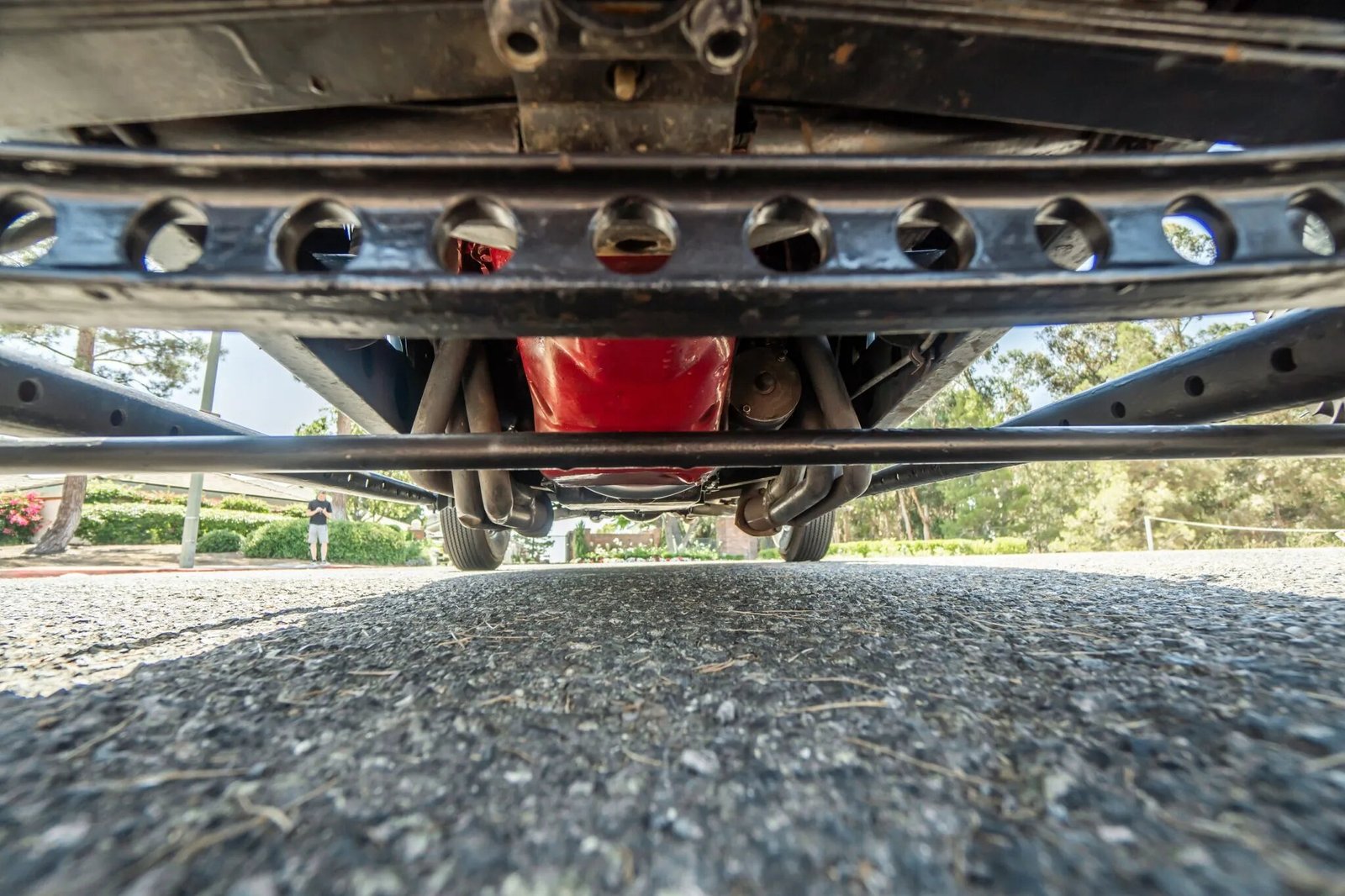 The frame has been boxed, and power is sent to the rear wheels through a TH350 three-speed automatic transmission and a ’57 Oldsmobile rear axle. A concealed transmission cooler has been added, and the fluid was replaced in preparaton for sale.