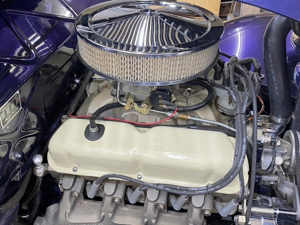 The replacement 347ci stroker V8 was built by Chuck Senatore, additional modifications and components included: Keith Black internals, Edelbrock Performer cylinder heads, Edelbrock Performer intake manifold, Edelbrock 600-cfm carburetor, Chrome air cleaner, Ford Racing ignition wires, Stainless-steel dual exhaust system.