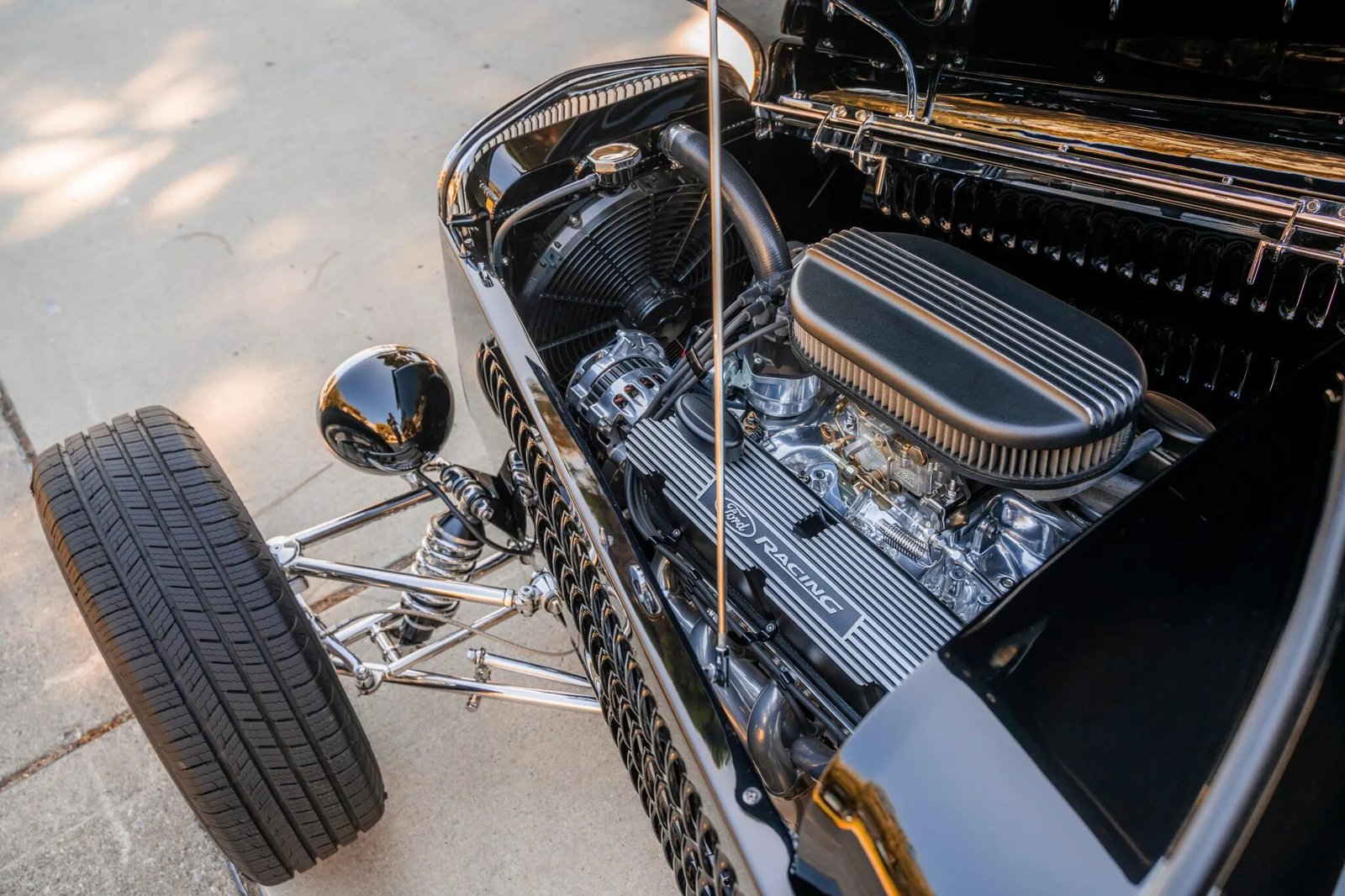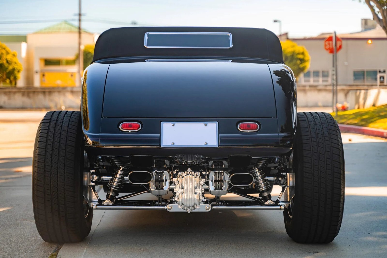 Produced by American Speed Company of Detroit, Michigan, the Speed33 body is constructed of 18-gauge steel and features an integrated stainless steel windshield frame as well as coach doors that pivot on concealed hinges. Sid Chavers supplied this example’s convertible top, which integrates a CoolSlot rear window and stows beneath a double-hinged tonneau panel.