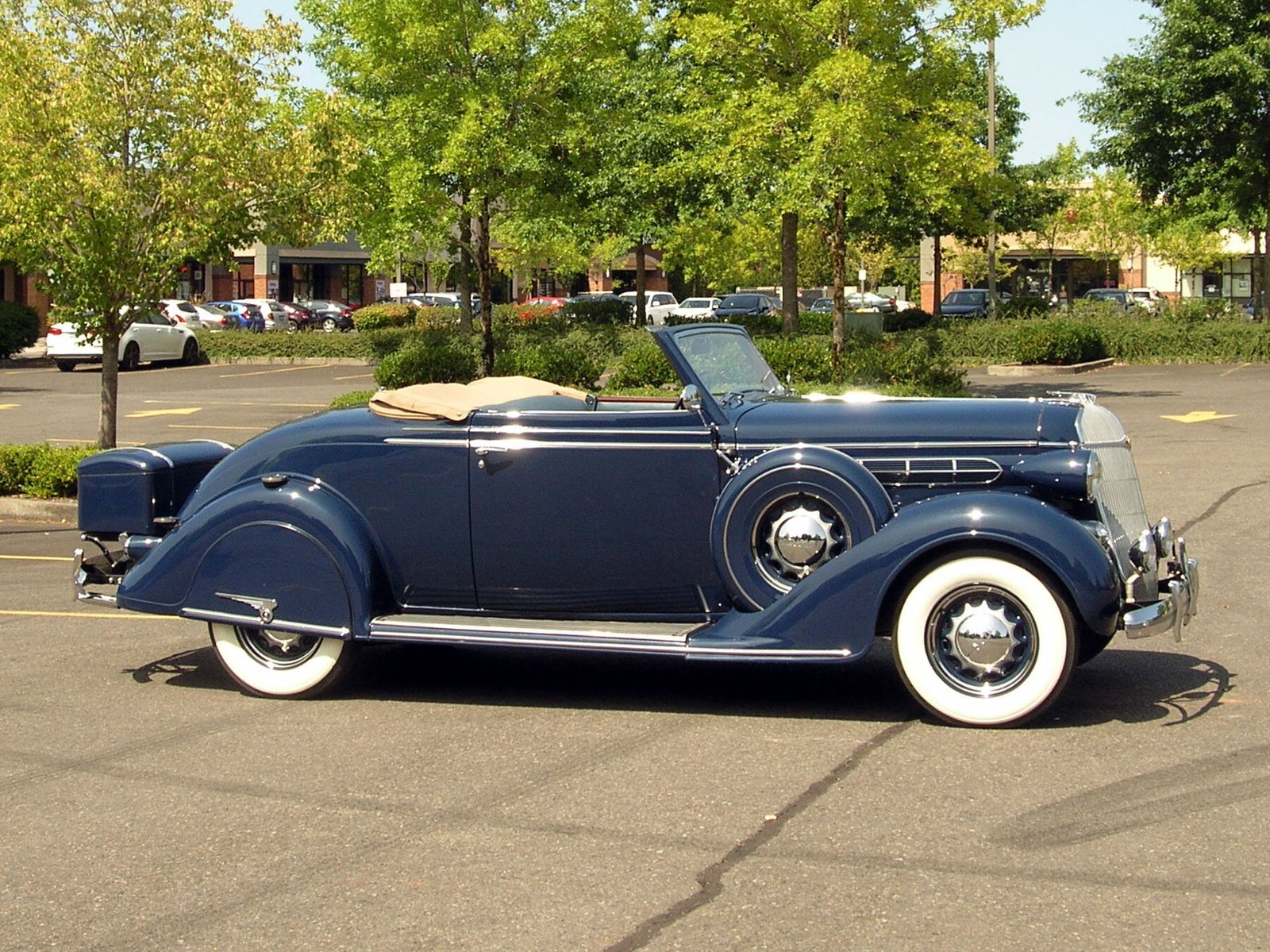 The car was originally blue, and it now wears a shade of blue offered by Chrysler in 1938.