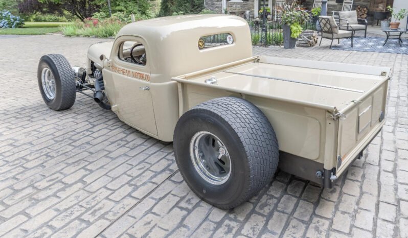 Additional features include a 1937 Essex Terraplane nose, 9″ Ford headlights, a body-color steel bed lid, and a 2″ hitch receiver with seven- and four-pin wiring connectors.
