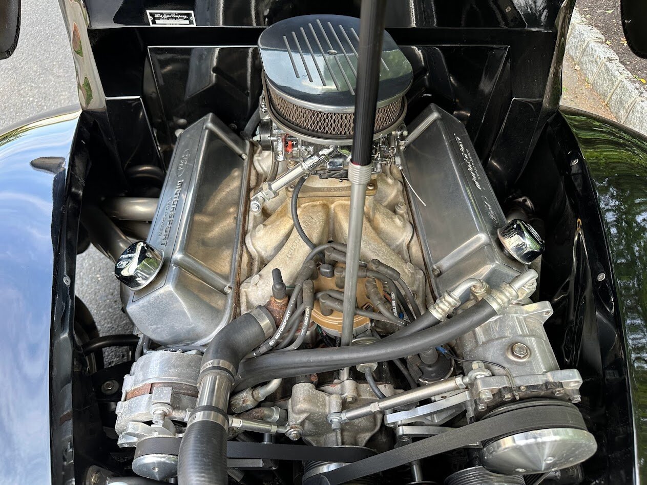 Additional equipment includes Ford Motorsports valve covers, an aluminum radiator, a polished air filter cover, a replacement fuel tank, and tubular exhaust manifolds with a custom exhaust system.