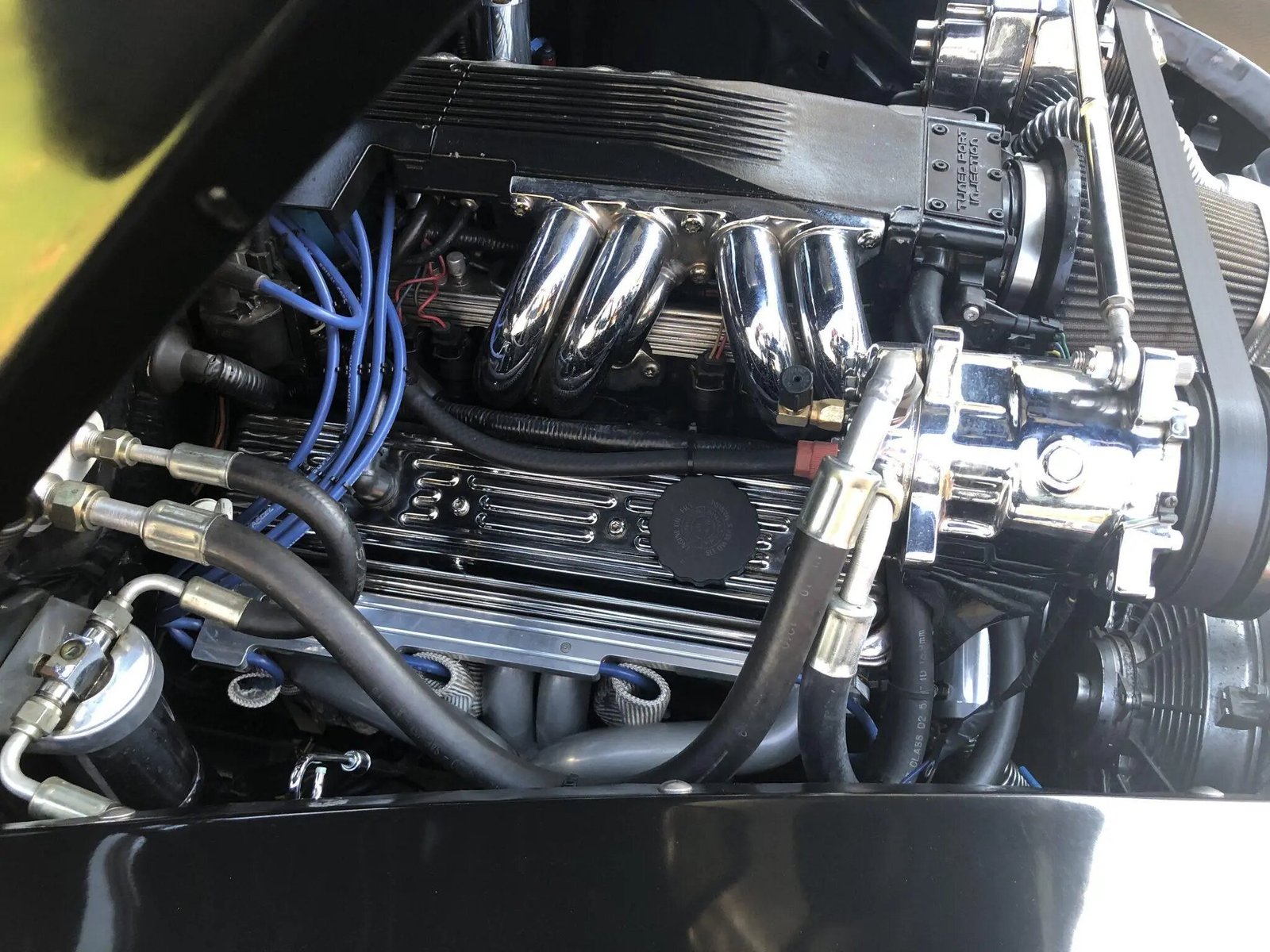 The 5.7-liter LT1 V8 was installed during the build and features chrome accents along with an aluminum radiator and a stainless-steel exhaust system.