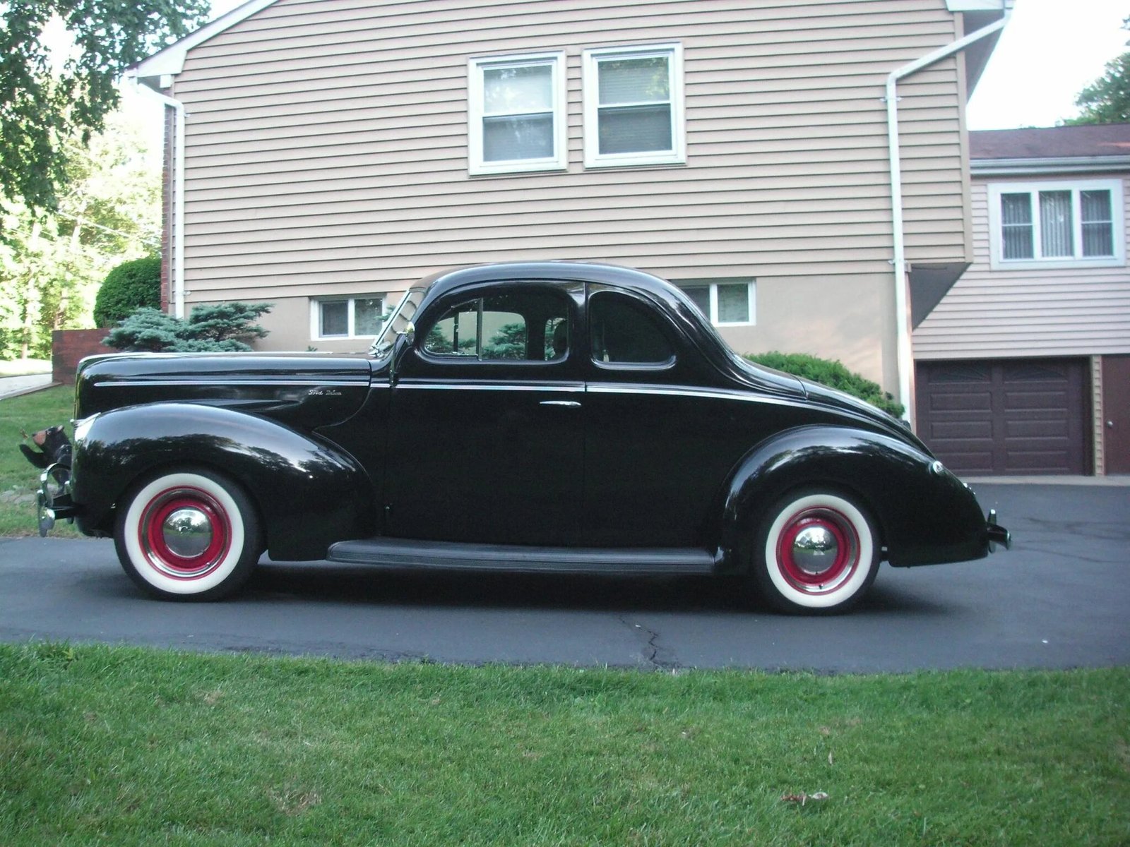 This 1940 Ford Deluxe Coupe was rebuilt and modified in the 1990s with a 5.7-liter GM LT1 V8, a Turbo-Hydramatic three-speed automatic transmission, and a Ford Granada-sourced rear end.