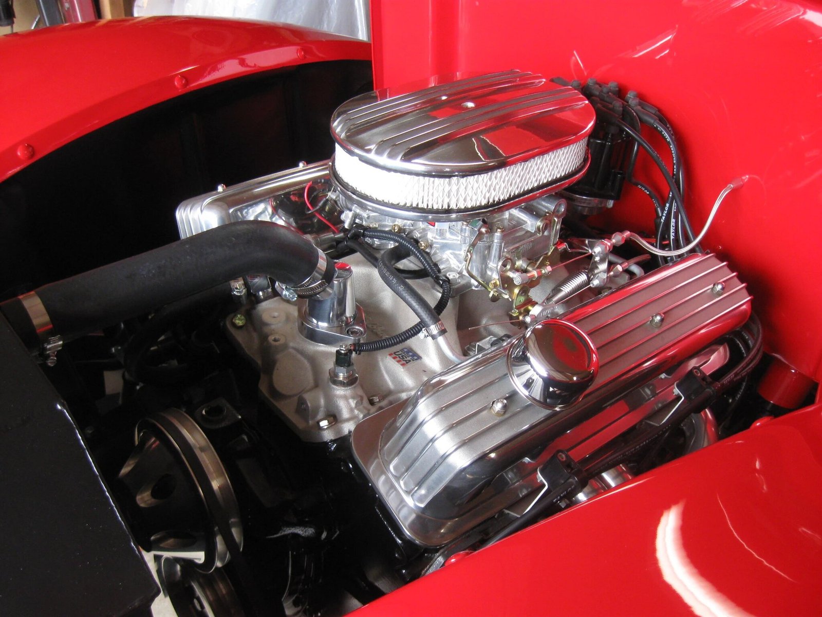 Induction is from a 600-cfm carburetor mounted on an Edelbrock intake and fed by a mechanical fuel pump.