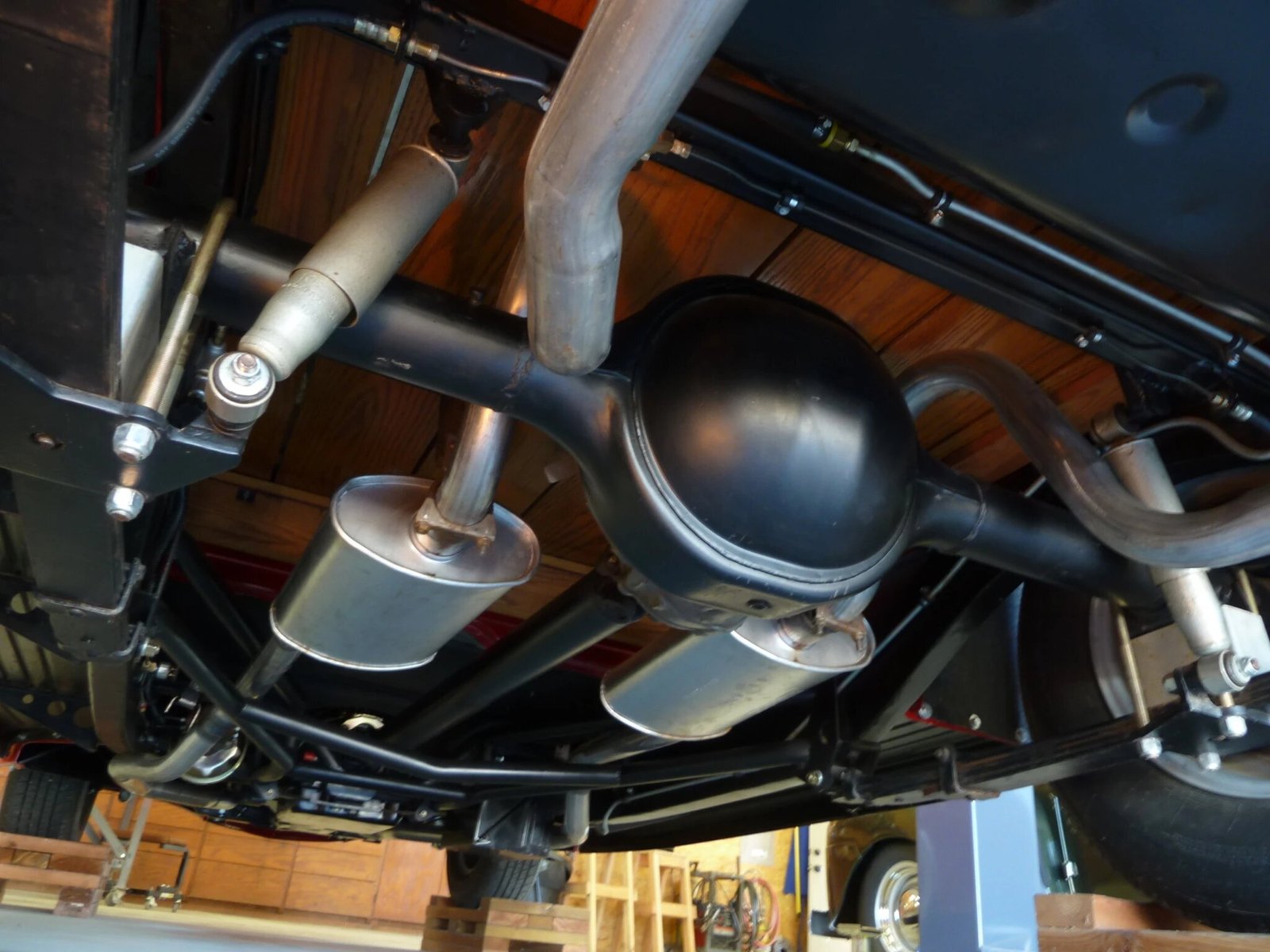 The front suspension consists of a Heidts Superide II independent setup with adjustable coilovers as well as manual rack-and-pinion steering.
