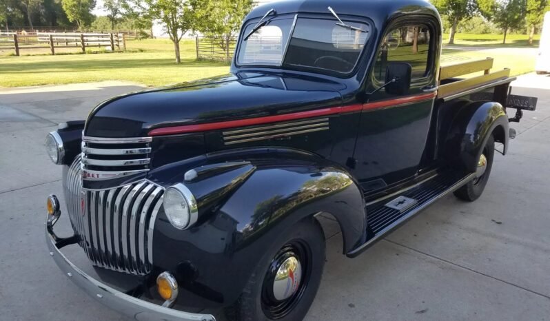 Details include a single rearview mirror, running boards with Chevrolet step plats, dual taillights, and turn signals.