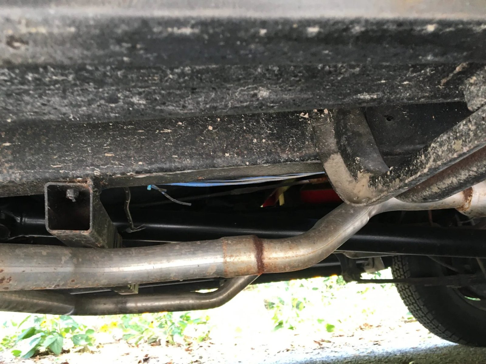 The dual exhaust system has been fitted with a crossover pipe.
