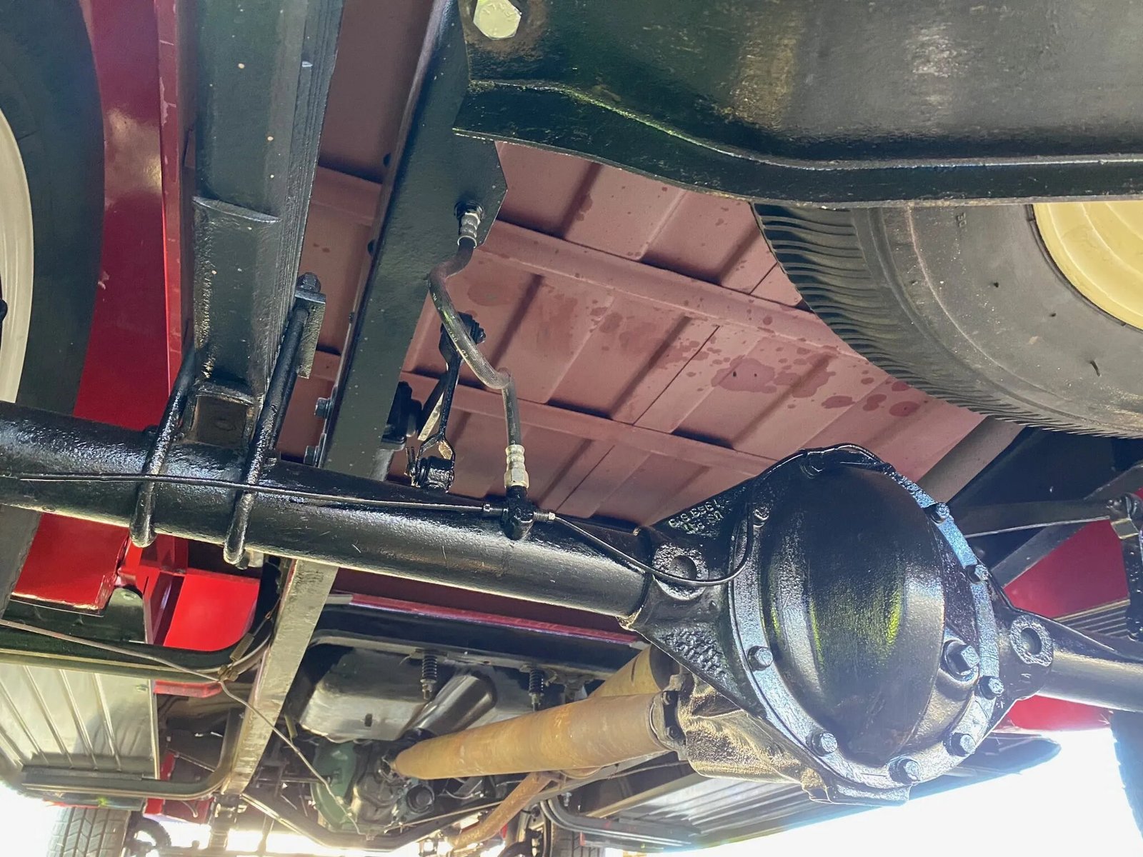 The 169.6ci Champion inline-six was removed from the truck, and its water jackets were cleaned, the freeze plugs were removed, the cylinder-head gasket was replaced, and the carburetor was rebuilt. The fuel tank was cleaned, and the fuel lines were replaced. The fluids have been changed. Power is delivered to the rear wheels through a three-speed T86 manual transmission, which was inspected and is believed to be a replacement unit.