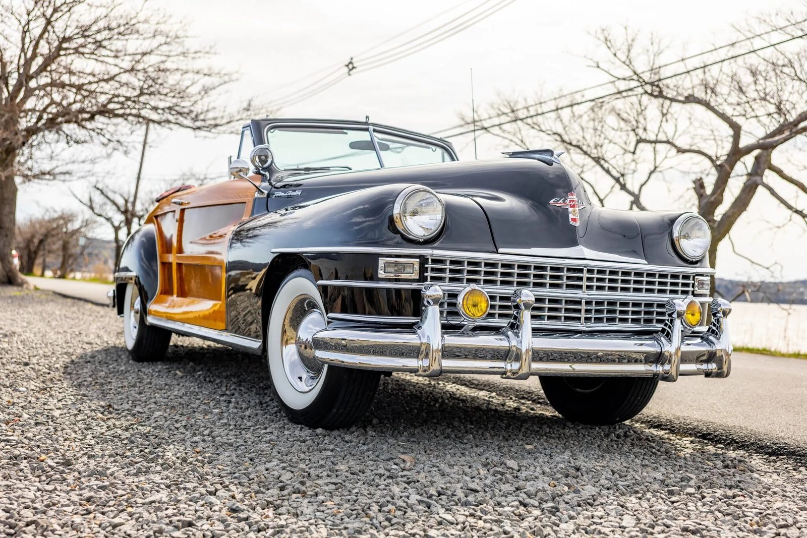 Delivered from the factory in Noel Green (30), the car was repainted black during the 1990s refurbishment, a color not offered by the factory on the 1947 Town & Country.