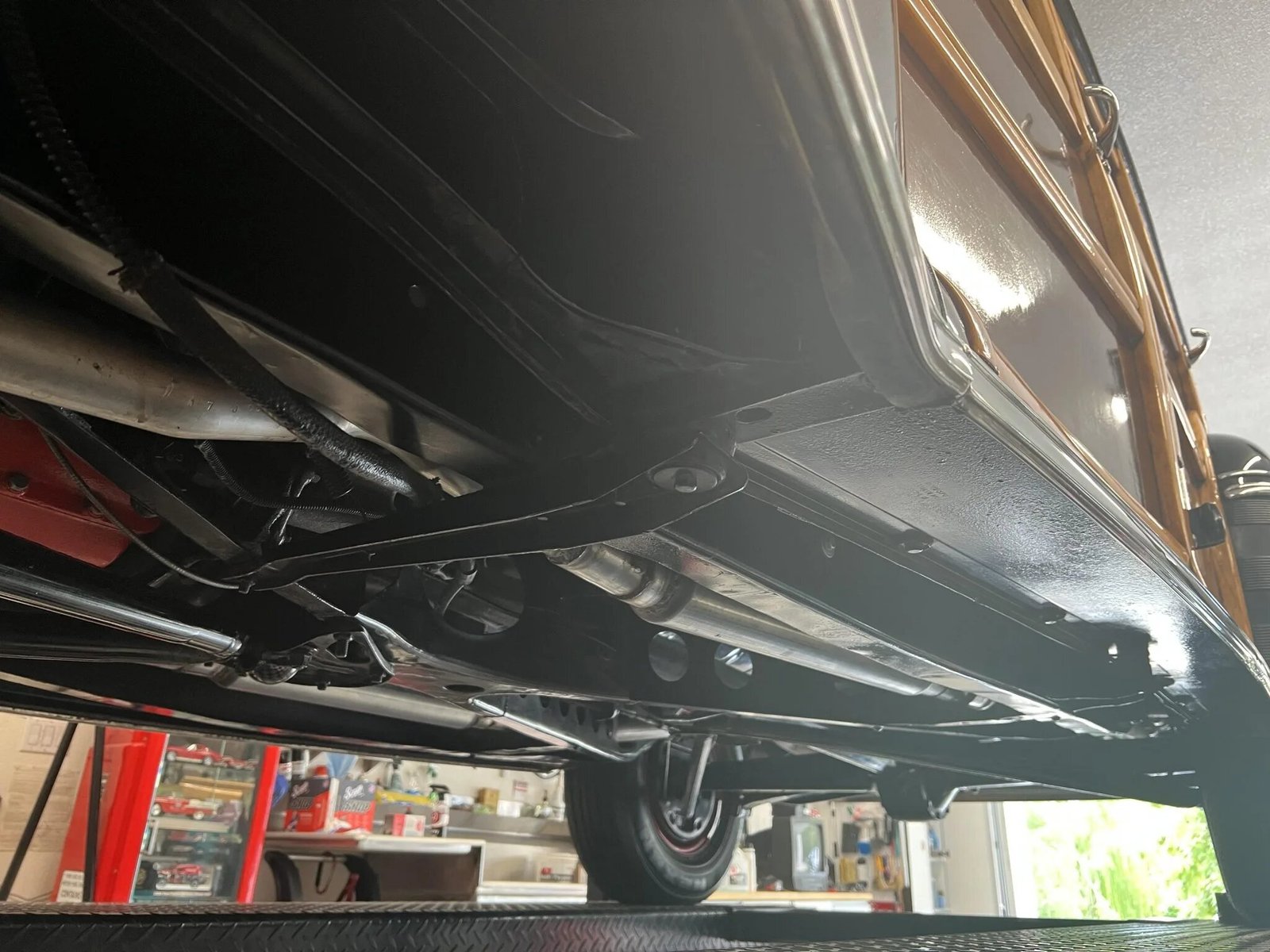 The bodywork have been repainted its current shade of black during the refurbishment, and the wood panels were also refinished at that time.