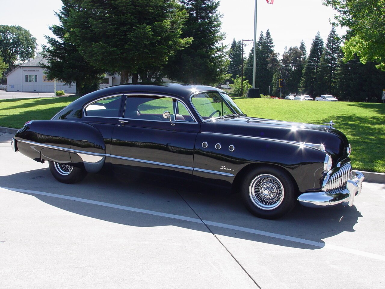 This 1949 Buick Super Sedanet is finished in black over red vinyl upholstery, the car is powered by a 401ci Buick Nailhead V8 mated with a three-speed Turbo 400 automatic transmission. The car ride on an Art Morrison chassis and is equipped with an independent front suspension, power rack-and-pinion steering, a four-link rear suspension, staggered-width 15″ wheels, and disc brakes as well as a Vintage Air A/C system, power windows, and Classic Instruments gauges.