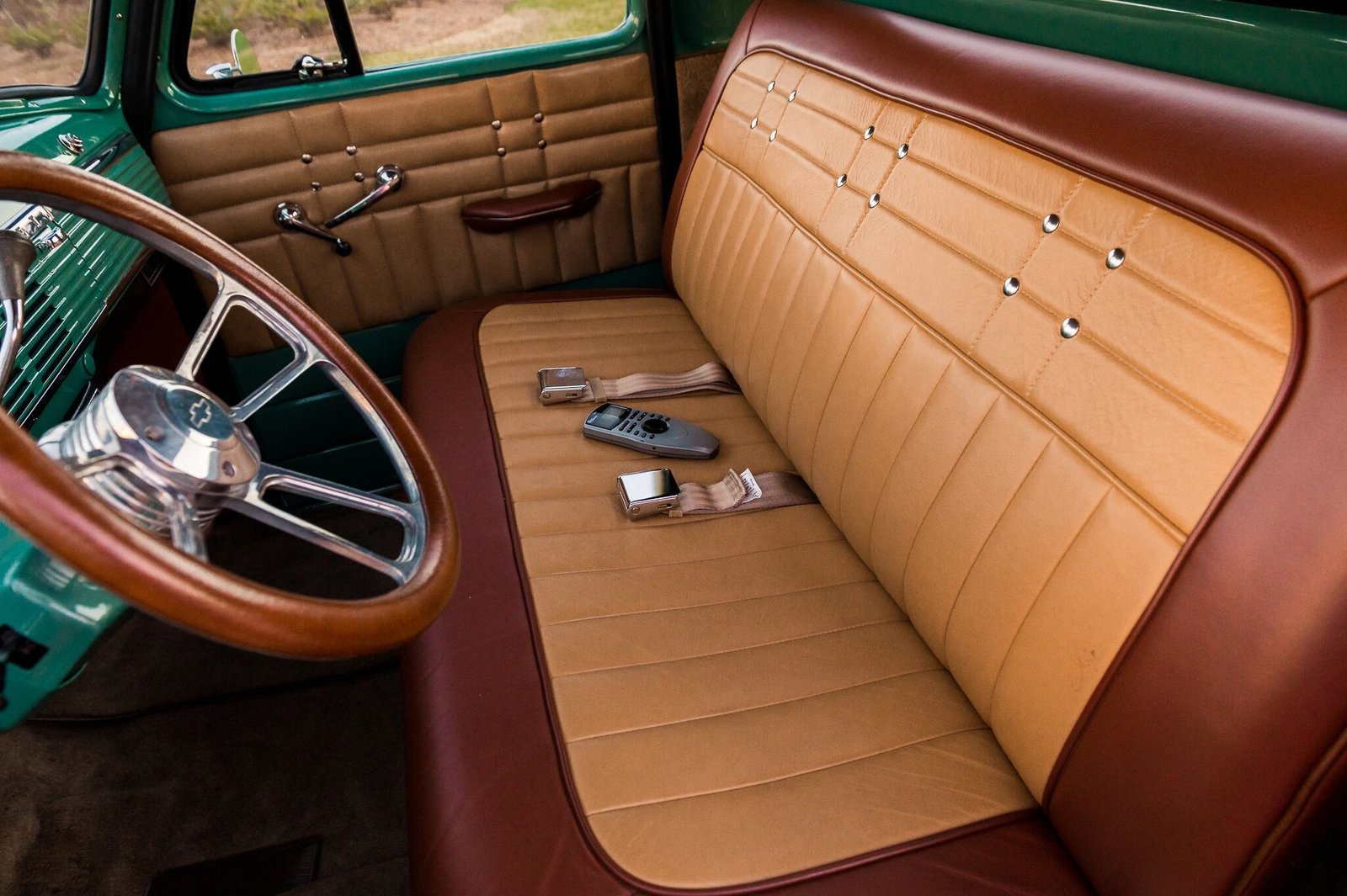 A Vintage Air climate-control system was added along with a hidden Bluetooth stereo system, which features speakers mounted in the dashboard and behind the bench seat.