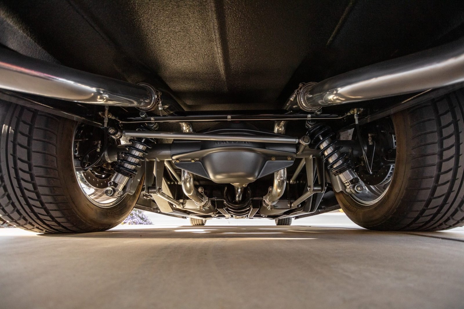 Power is delivered to the rear wheels through a Tremec five-speed manual transmission and a Winters nine-inch rear axle.