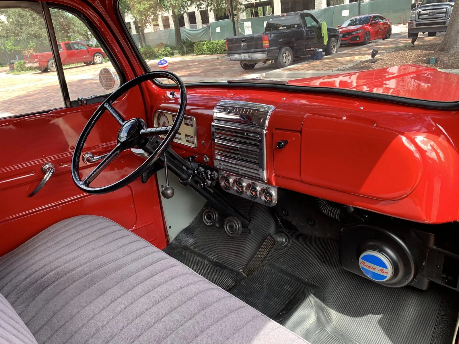 Equipment includes an aftermarket Magic Air heater, sun visors, and a gray headliner.