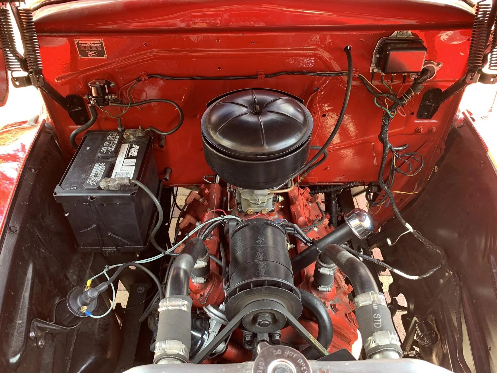 The 239ci flathead V8 sends power to the rear wheels through a three-speed manual transmission. The truck is equipped with an upgraded radiator, and the electrical system has been converted to 12 volts.