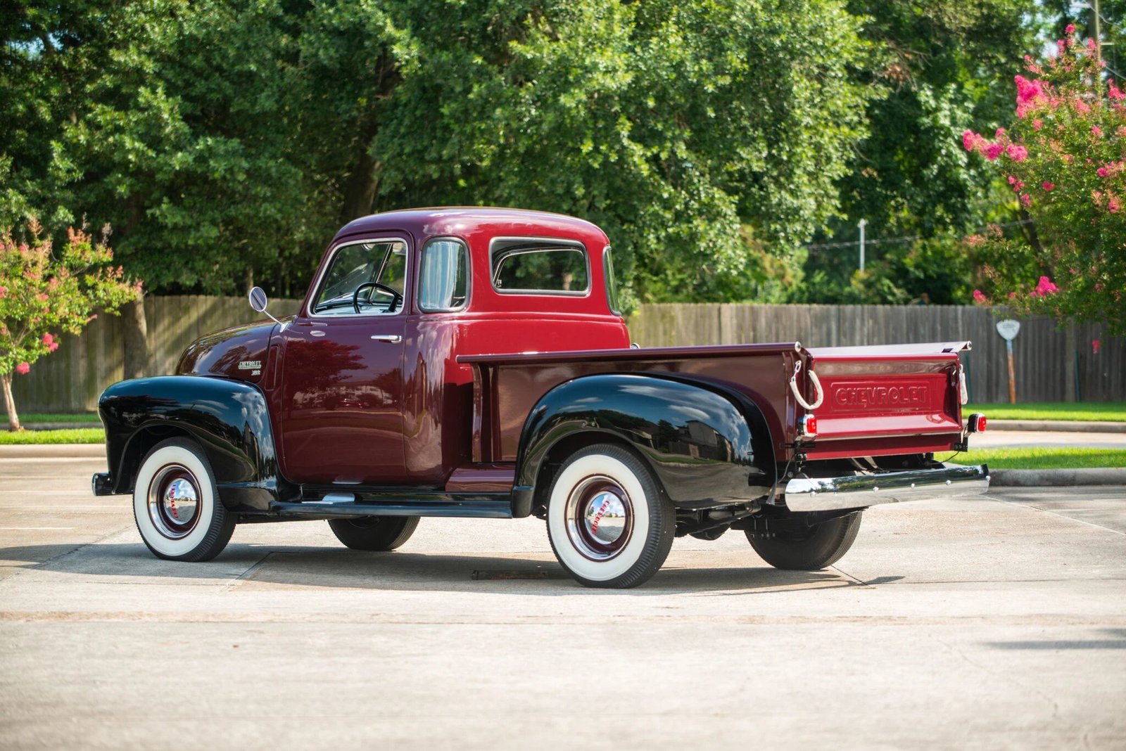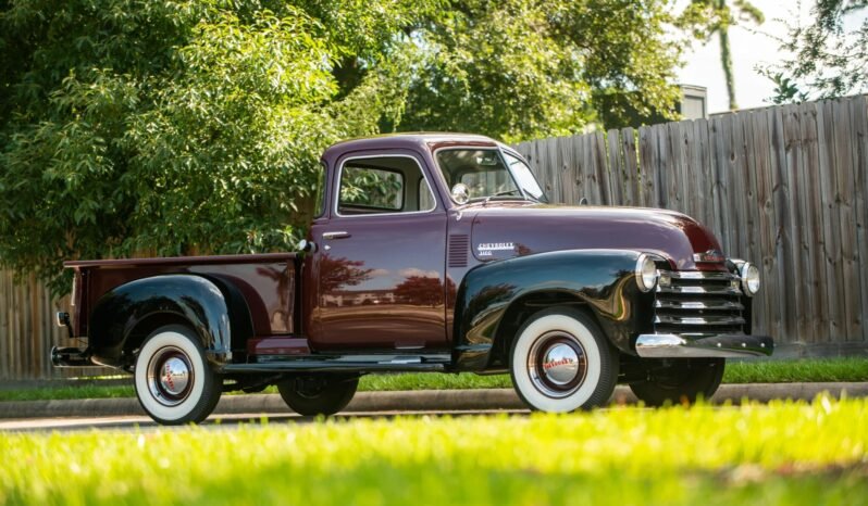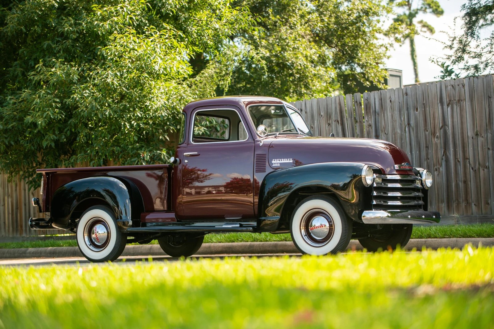 This 1950 Chevrolet 3100 pickup was refurbished three years ago. The work included a repaint in black and maroon as well as installation of a replacement 216ci straight-six, which is mated to a three-speed manual transmission. A replacement bed, bumpers, emblems, door handles, and glass were fitted, and overhauls of the braking, suspension, and steering systems were carried out.