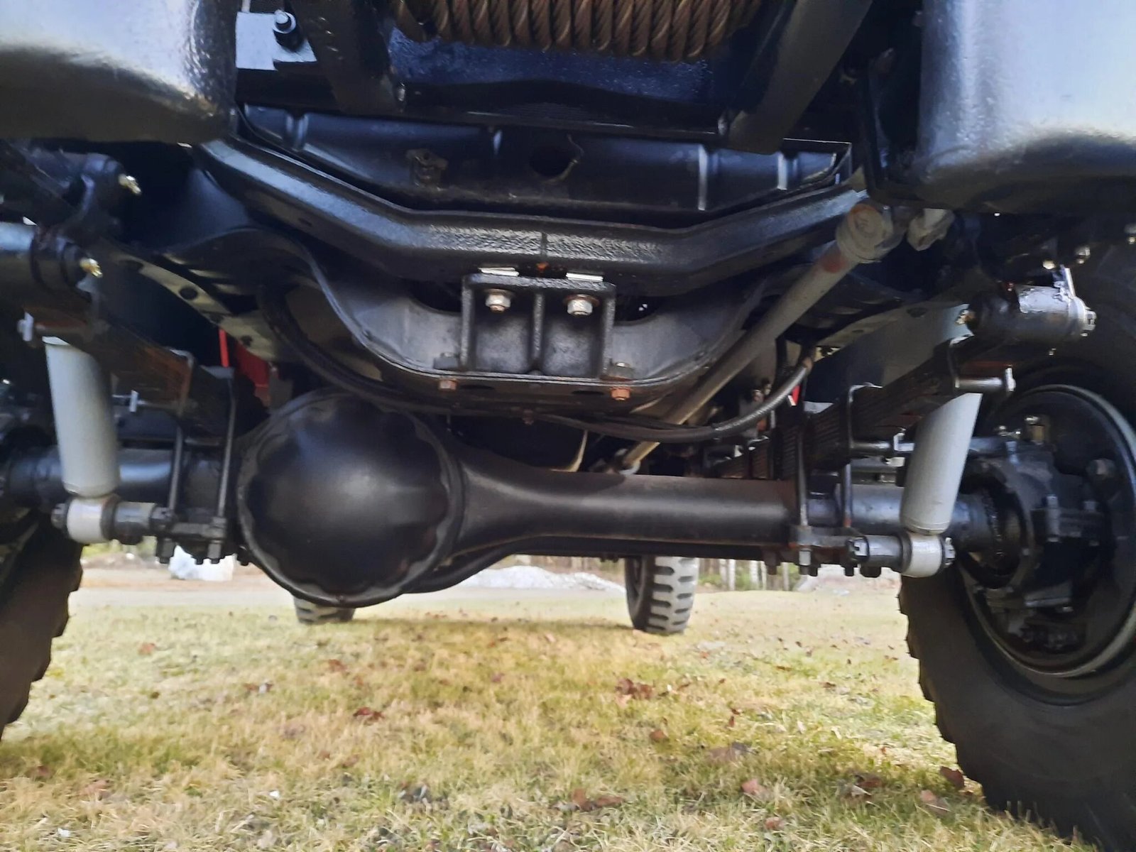 Power is sent to the rear or all four wheels through a replacement four-speed manual transmission and a two-speed transfer case.