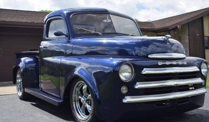 This 1950 Dodge B2B is a half-ton pickup finished in dark blue over tan leather upholstery and powered by a 392ci Hemi V8 mated to a three-speed automatic transmission. A refurbishment included lowering the roof 2½”, modifying the bed and front facia, repainting the body, rebuilding the engine, transmission, and differential, and installing Mustang II front suspension components, Vintage Air air conditioning, and a Pioneer stereo.