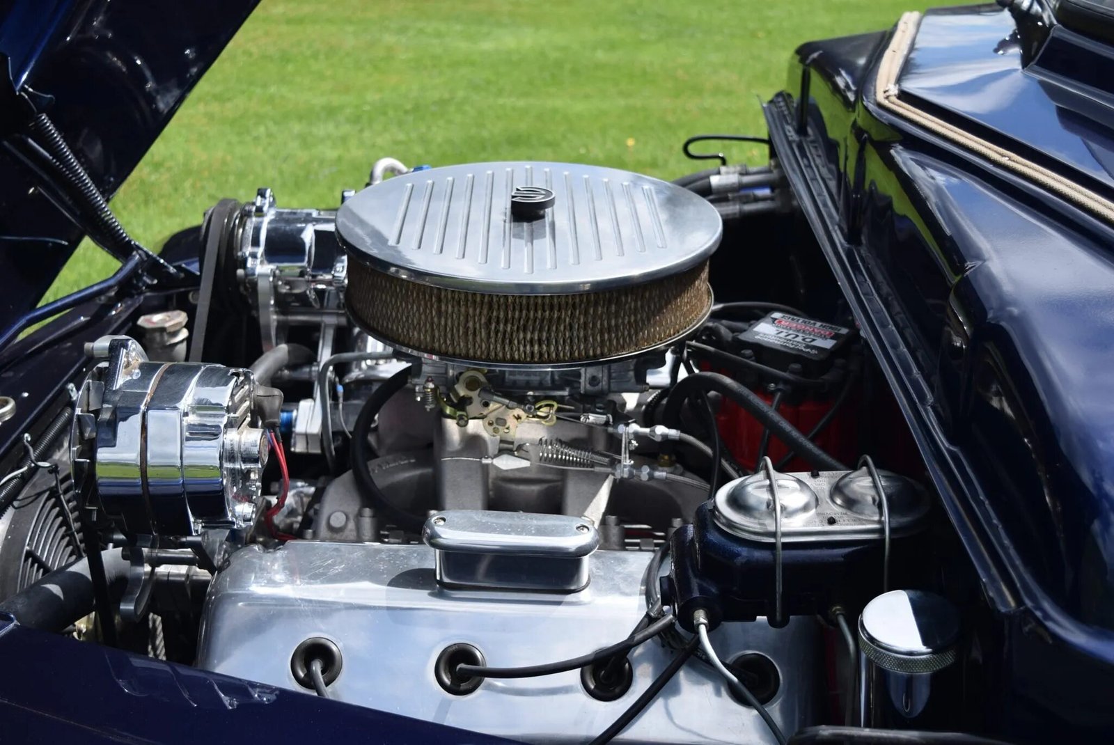 The 392ci Hemi V8 was sourced from a 1957 Chrysler and rebuilt before being fitted with custom fabricated headers and a chrome alternator and air conditioning compressor.
