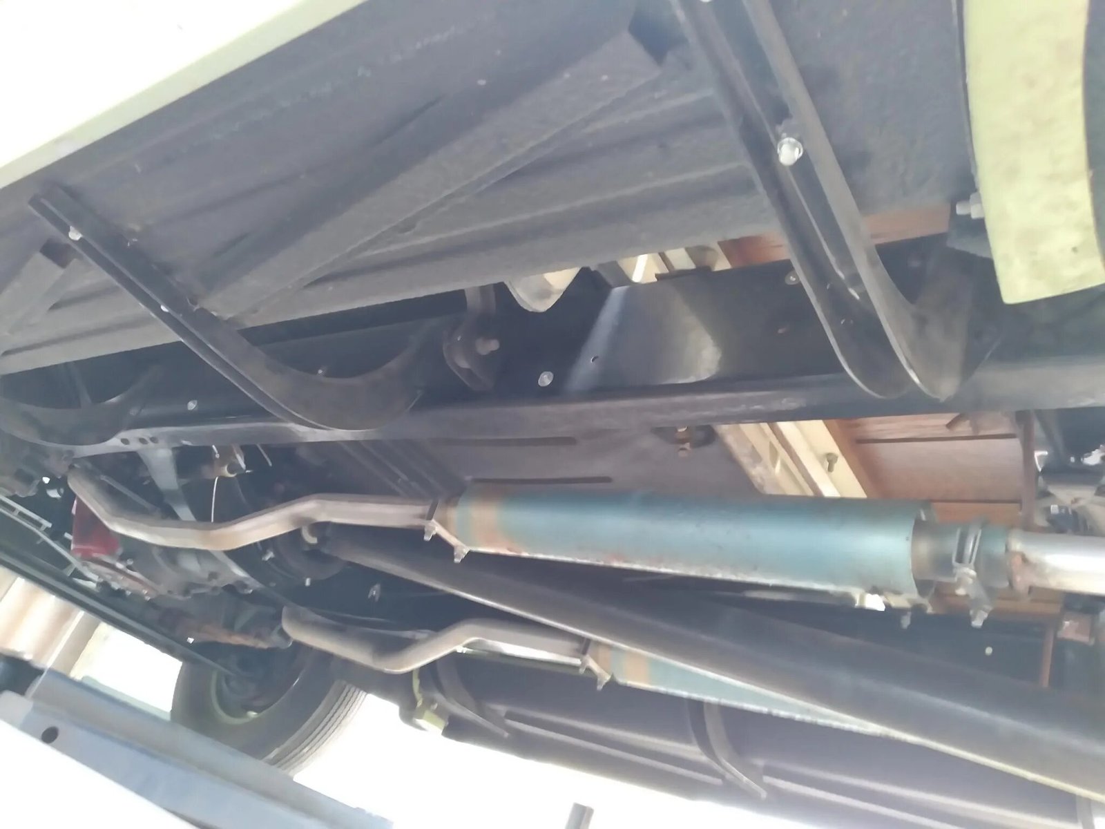 Body-color 16″ steel wheels feature chrome trim rings and Ford-branded hubcaps and wear Firestone wide whitewall tires.