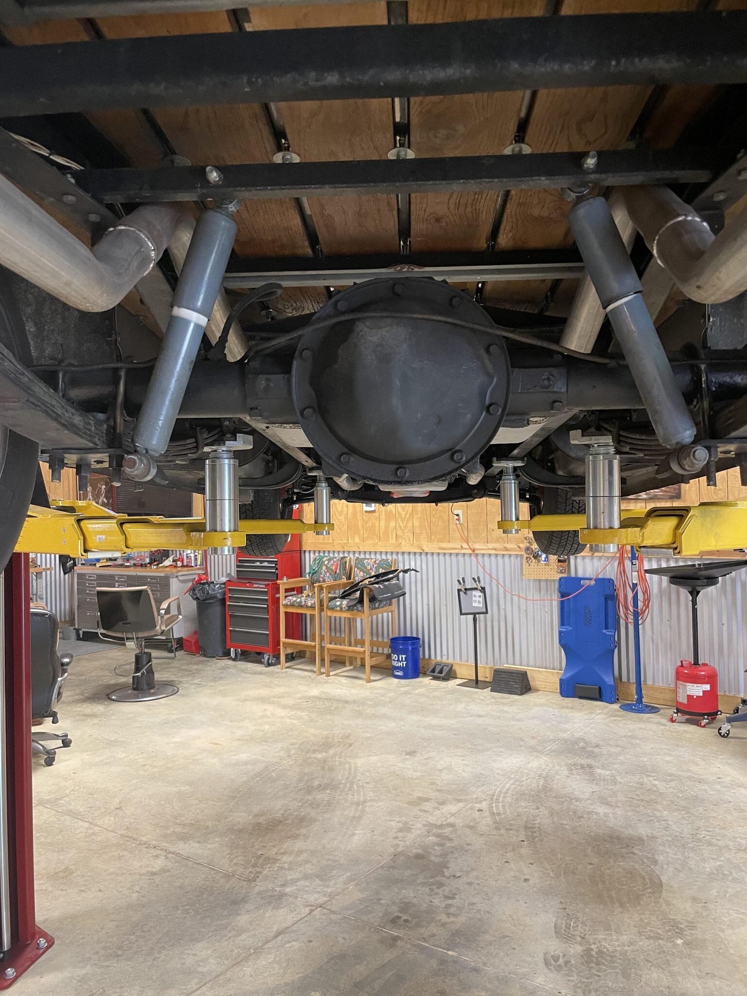 Body-color 16″ steel wheels feature chrome trim rings and Ford-branded hubcaps and wear 235/75 Coker whitewall tires.