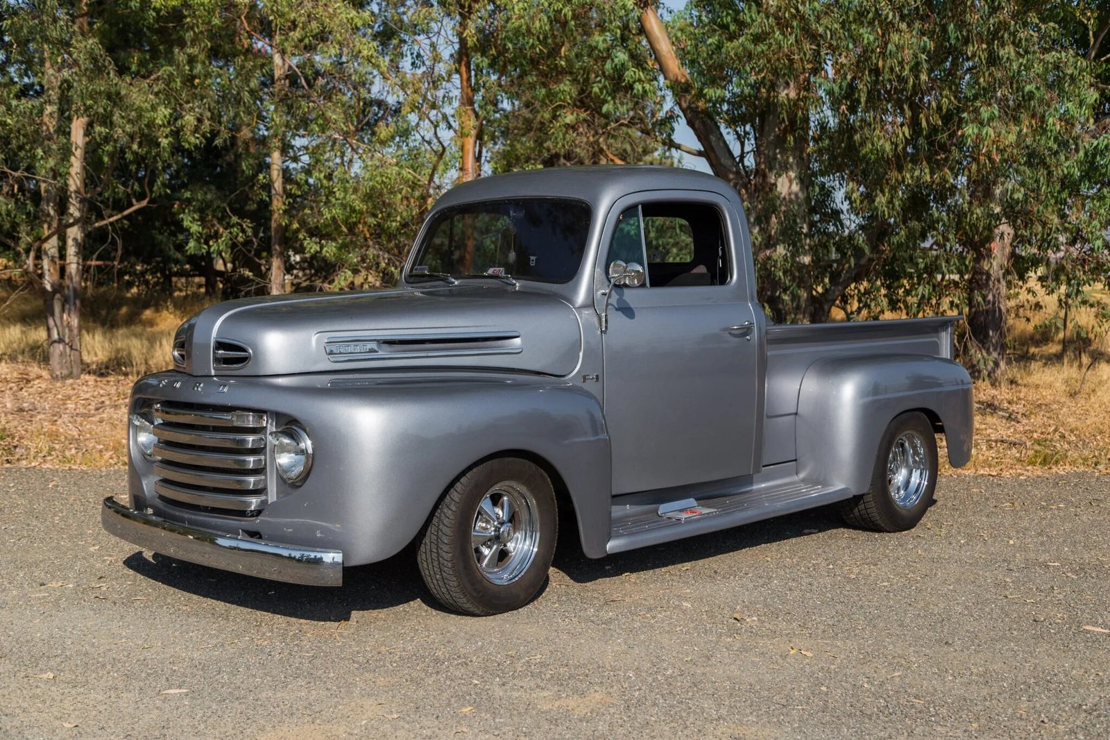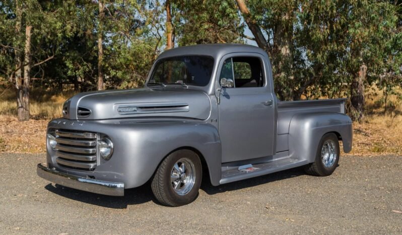 This 1950 Ford F-1 pickup has been augmented with a modern drivetrain including a fuel-injected 5.8-liter Windsor V8 mated to a four-speed E4OD automatic transmission and a 8.8″ Ford rear end with a limited-slip differential.