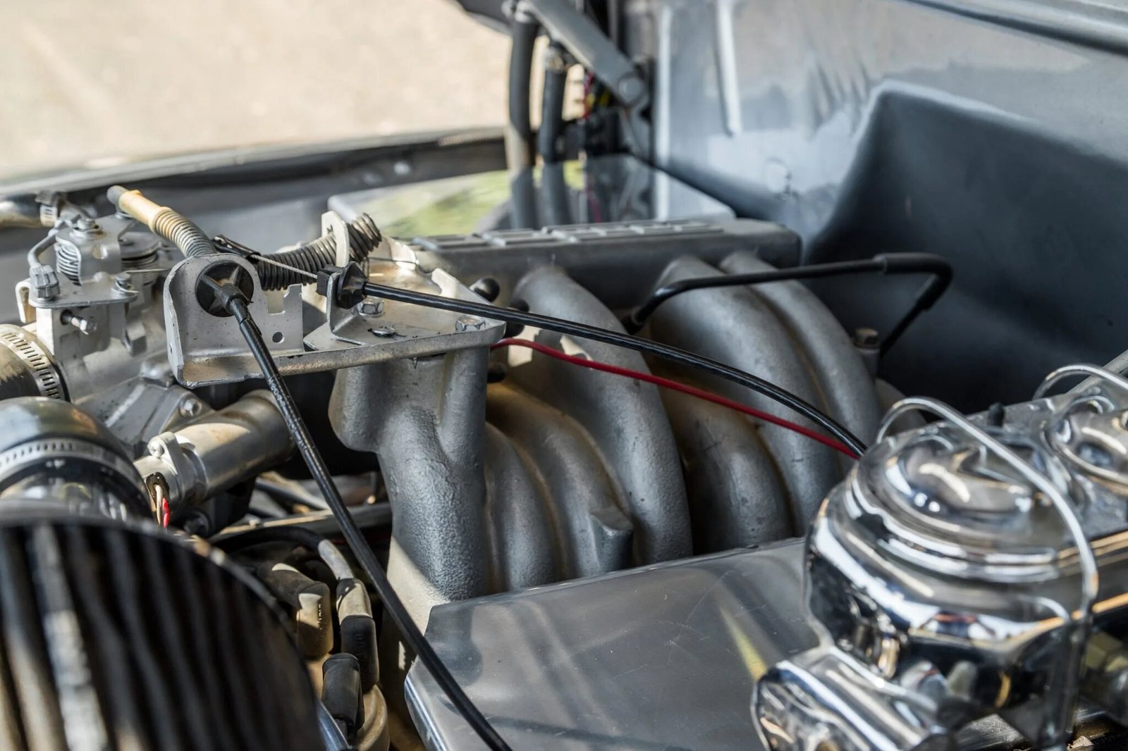 Gray carpeting is offset by a body-matched metal dashboard and door panels.
