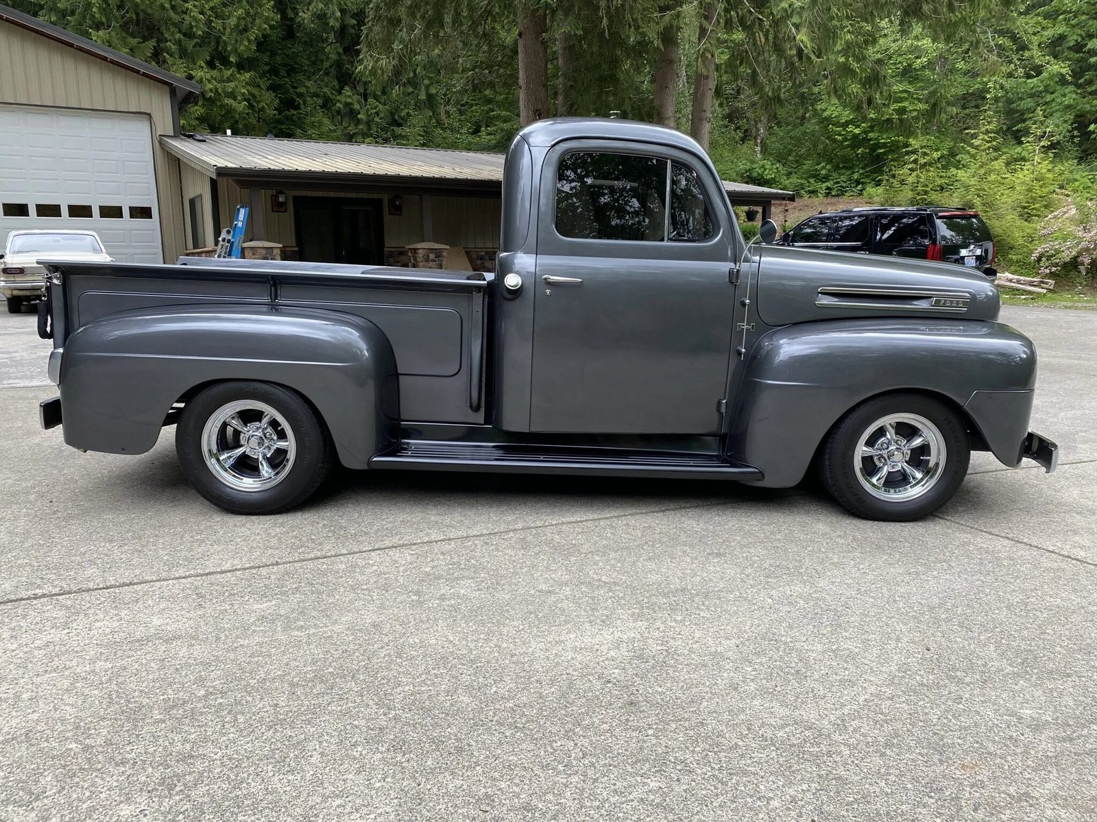 This 1950 Ford F-1 is a Stepside pickup that was refurbished with a replacement 300ci inline-six and a three-speed automatic transmission.