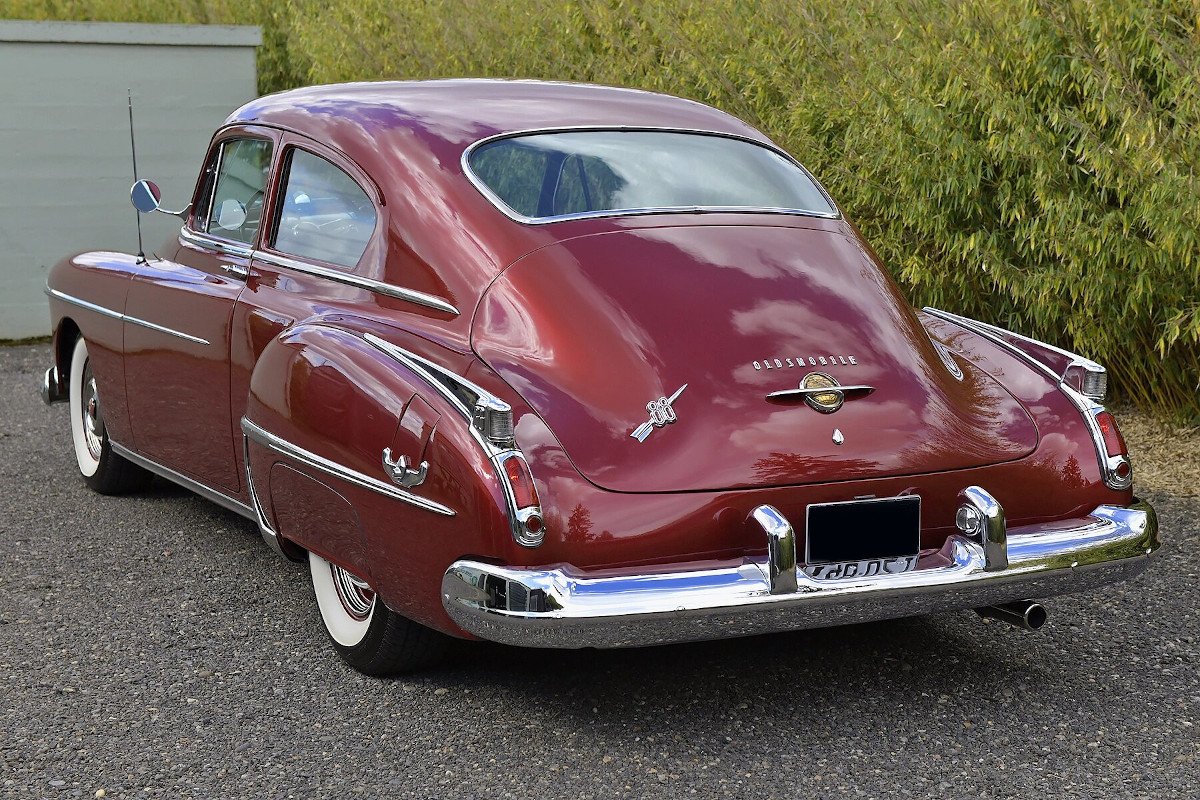 This Oldsmobile Rocket 88 Club Sedan was produced at GM’s Lansing, Michigan, facility, and is powered by a 303ci Rocket V8 paired with a Hydra-Matic automatic transmission.