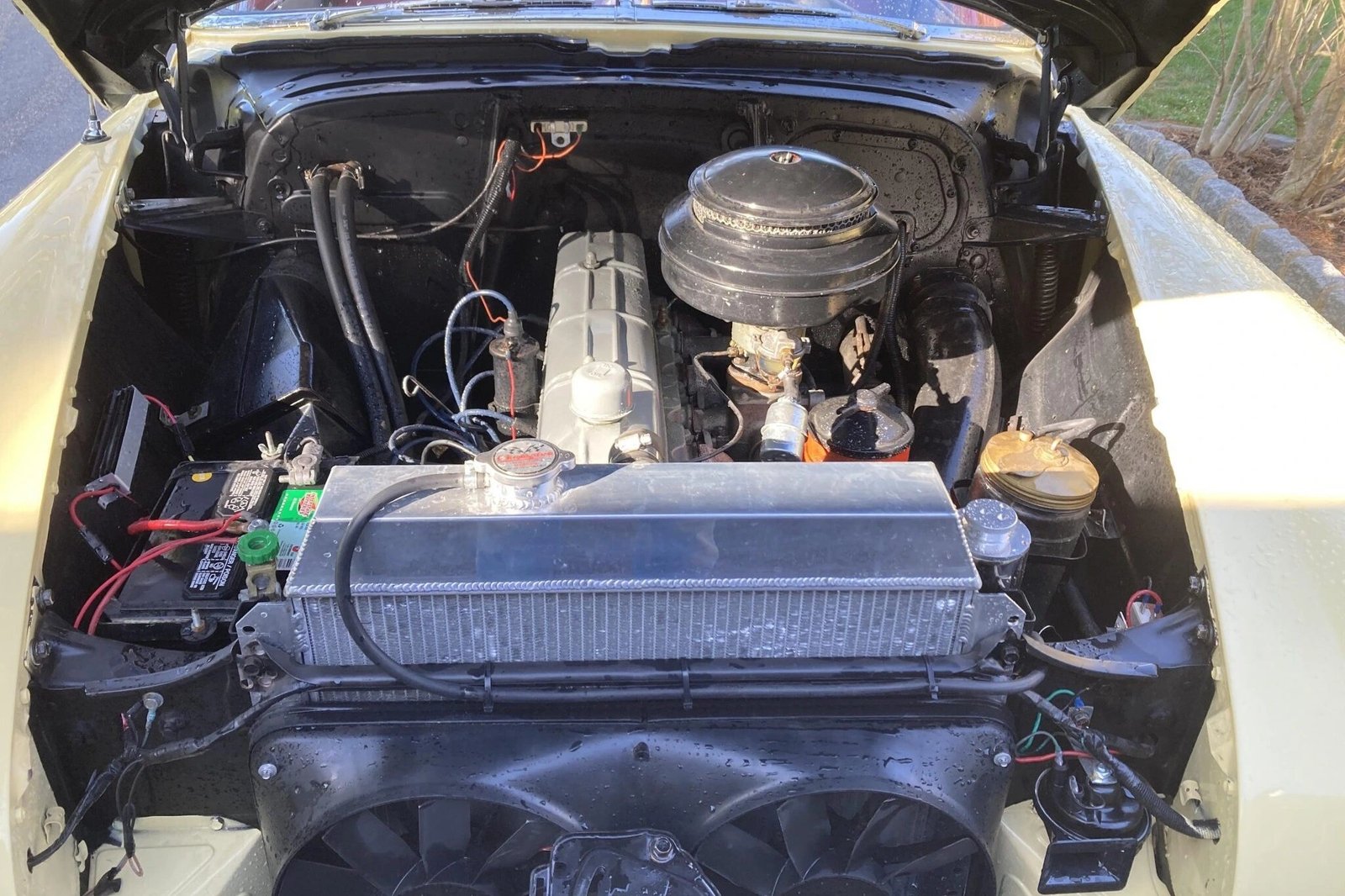 Modifications include an aluminum radiator, dual electric pusher fans, and a 12-volt wiring system.