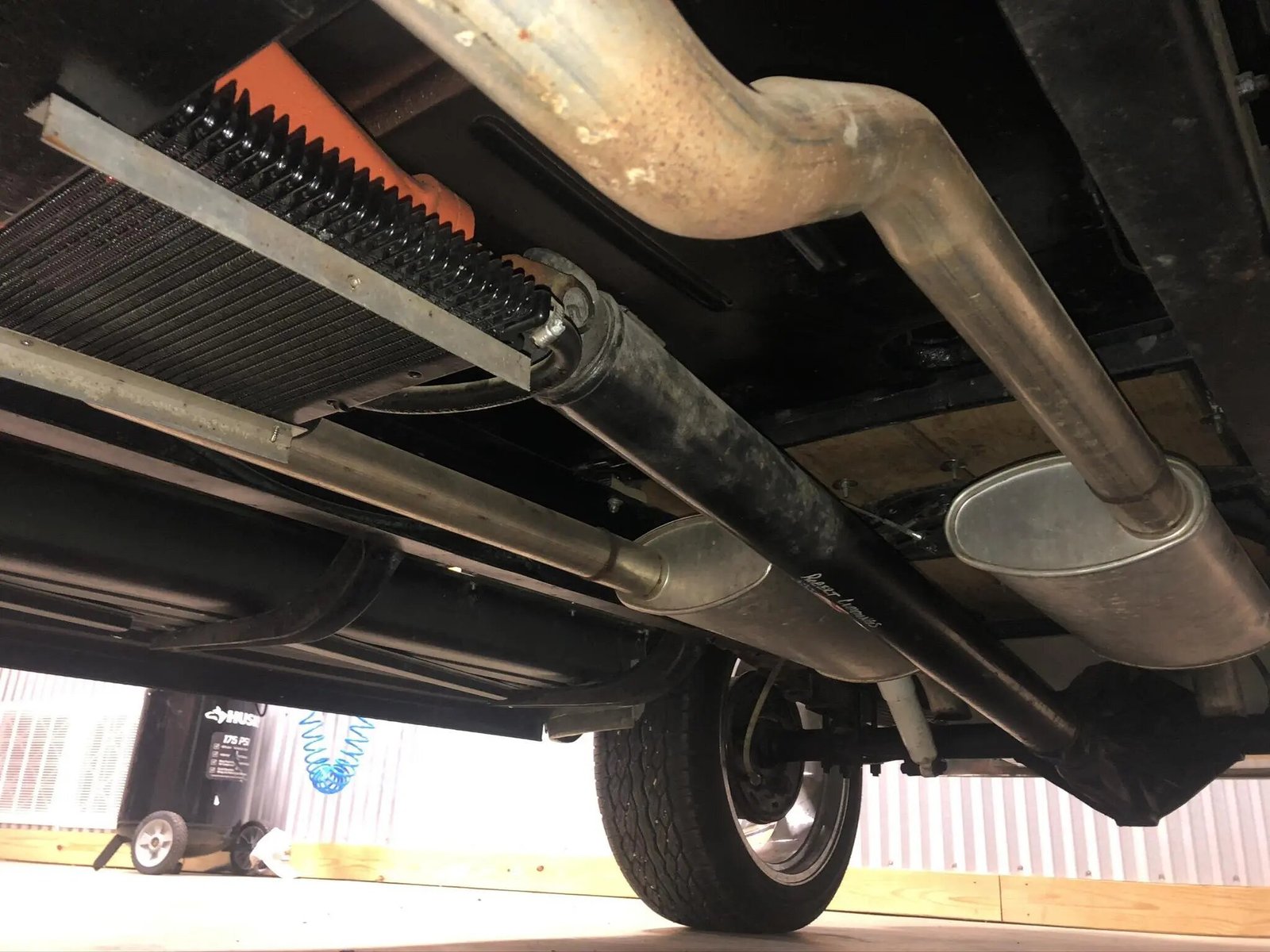An aluminum fuel tank is located under the rear of the truck.