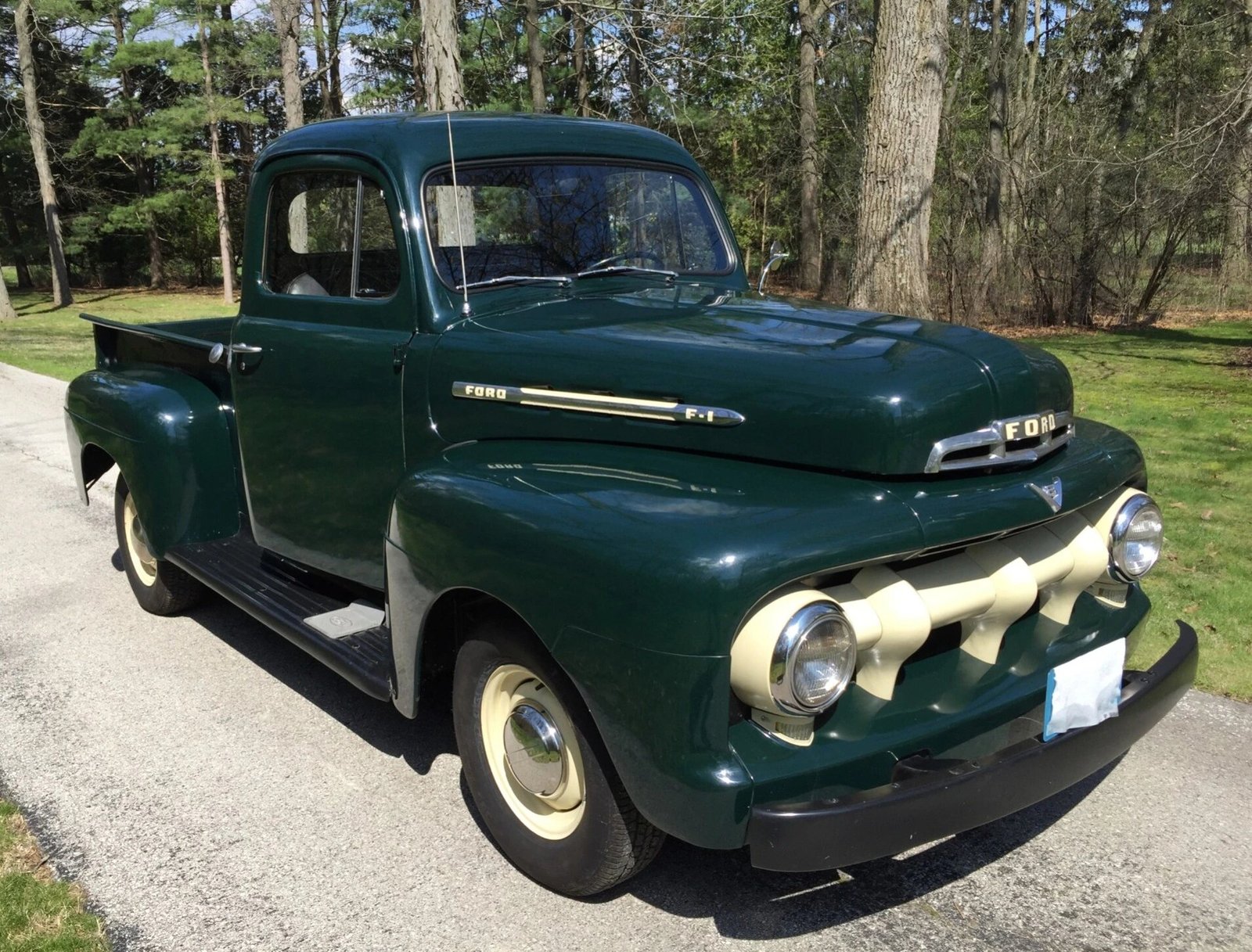 Green paint was carried to the steel interior panels, where it is accented by a black vinyl bench seat, floor covering, and headliner as well as chrome hardware.