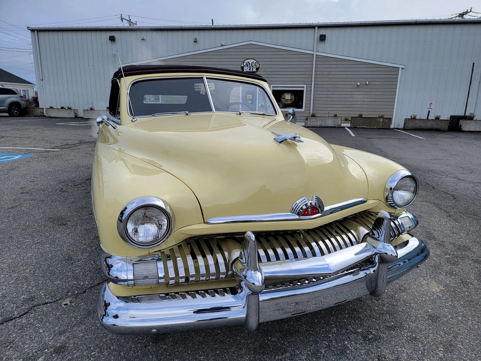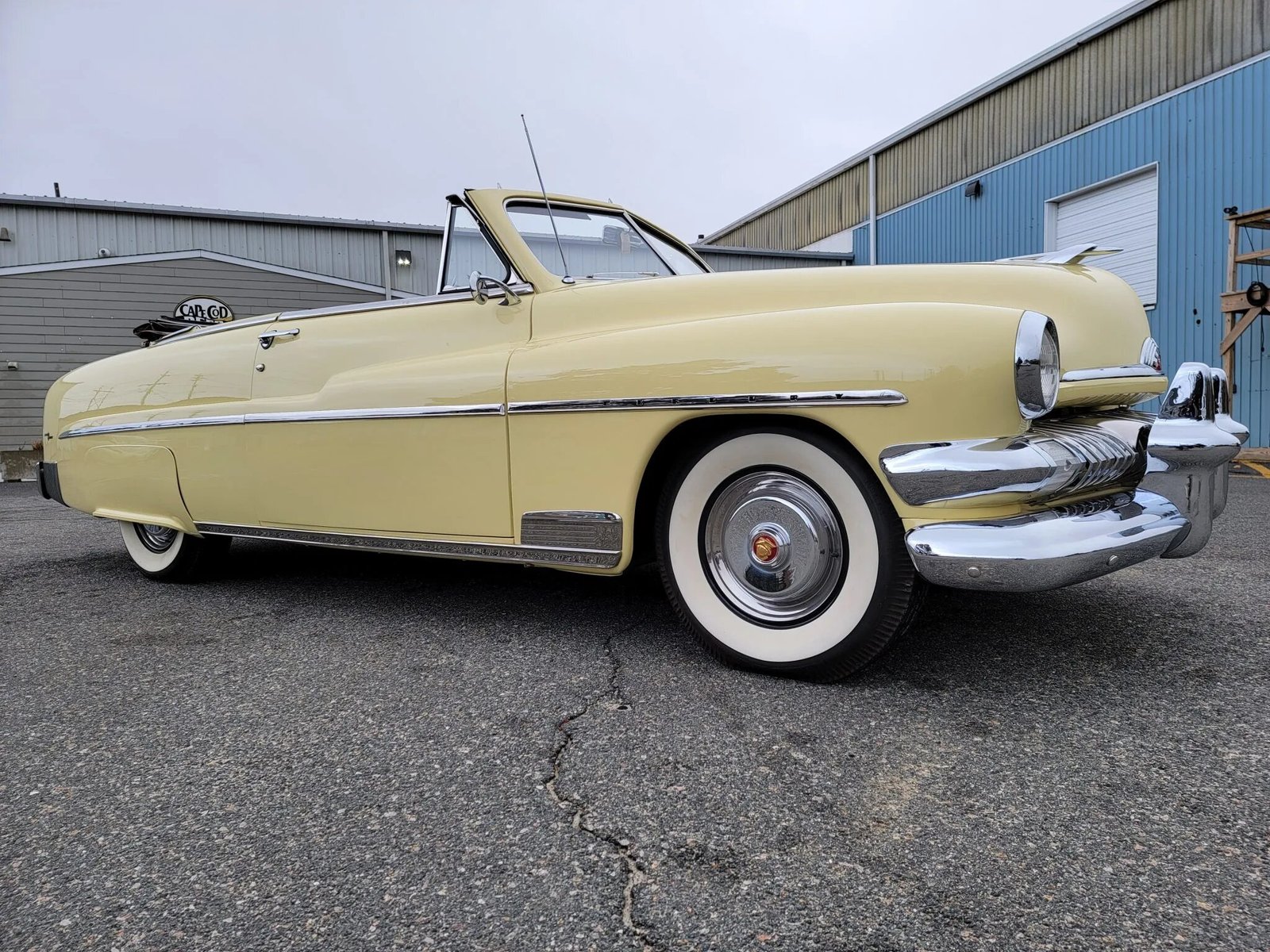 This 1951 Mercury Eight convertible is finished in cream over red and black upholstery and is powered by a 255ci flathead V8 paired with a three-speed “Merc-O-Matic” automatic transmission.