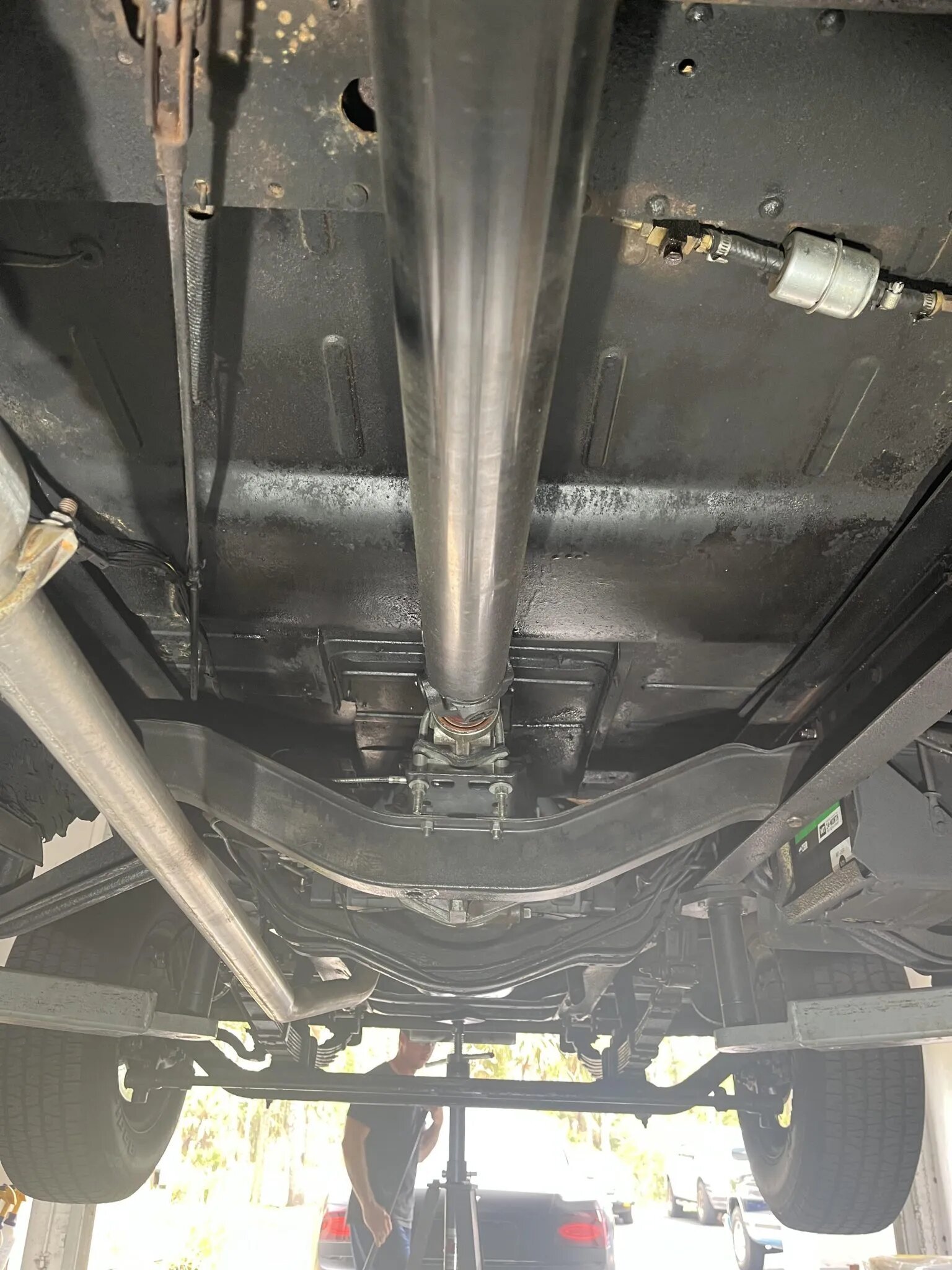 The 235ci Blue Flame Six inline-six was overhauled and features a single downdraft carburetor. Work performed in preparation for the sale and features a single downdraft carburetor. Work performed in preparation for the sale. Power is delivered to the rear wheels through a Tremec T5 five-speed manual transmission and a 10-bolt rear axle.