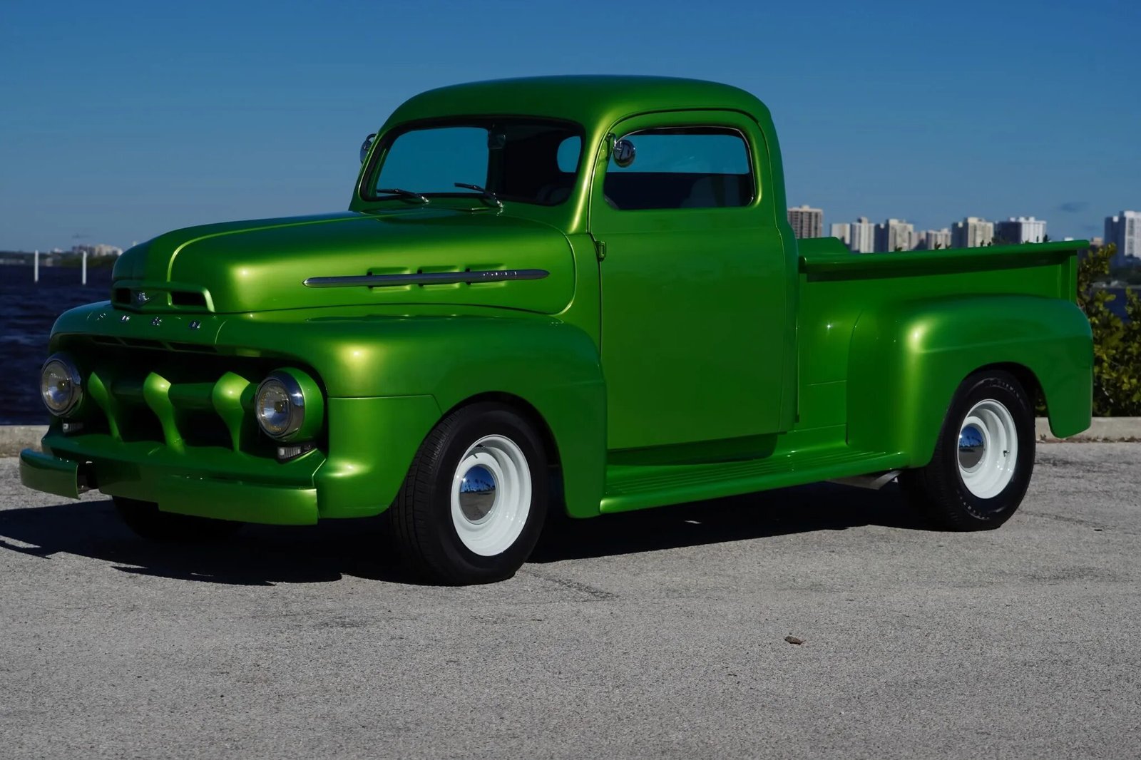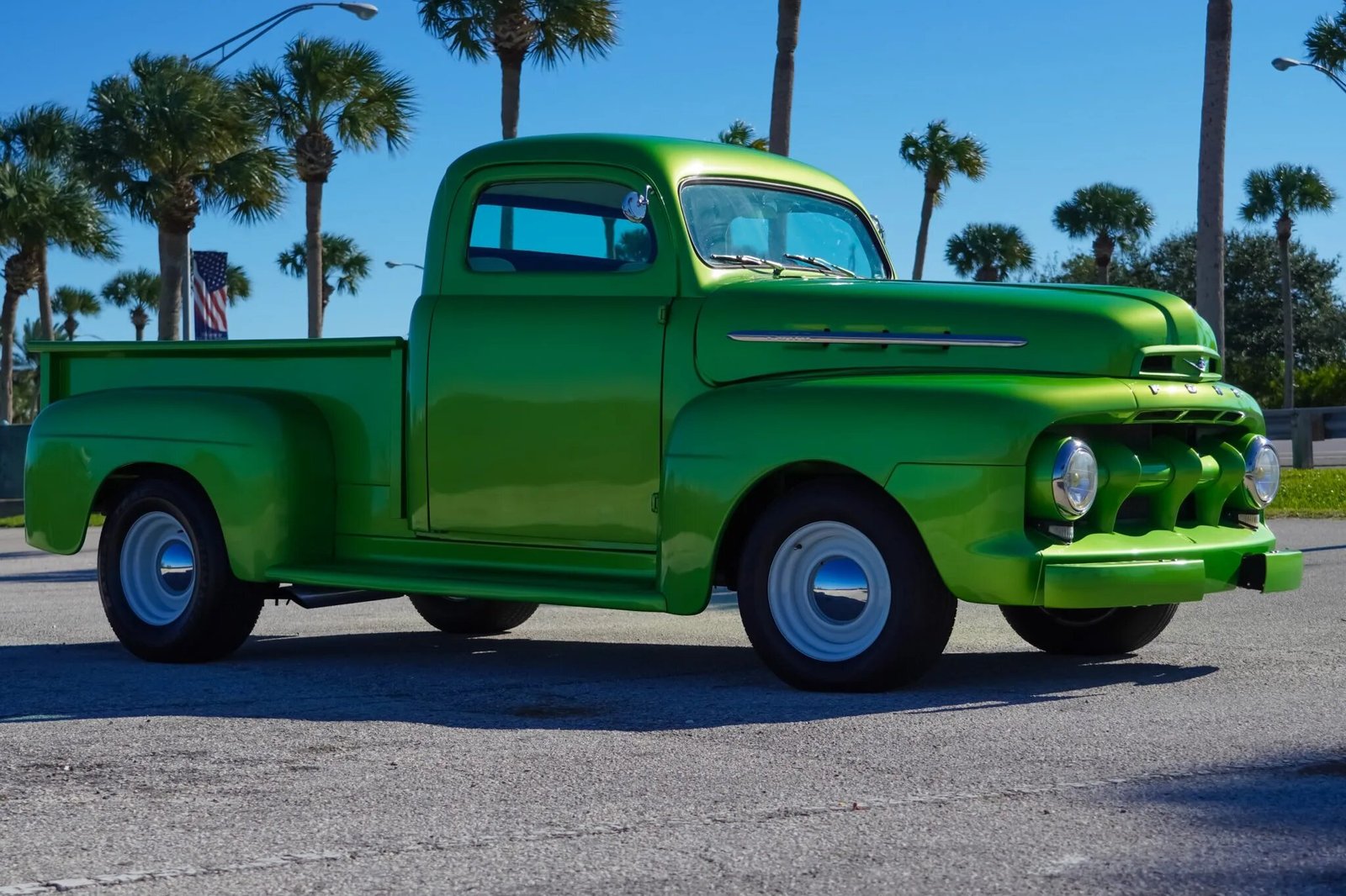 This 1952 Ford F-1 pickup was modified and is powered by a fuel-injected 455ci Pontiac V8 paired with a three-speed automatic transmission.