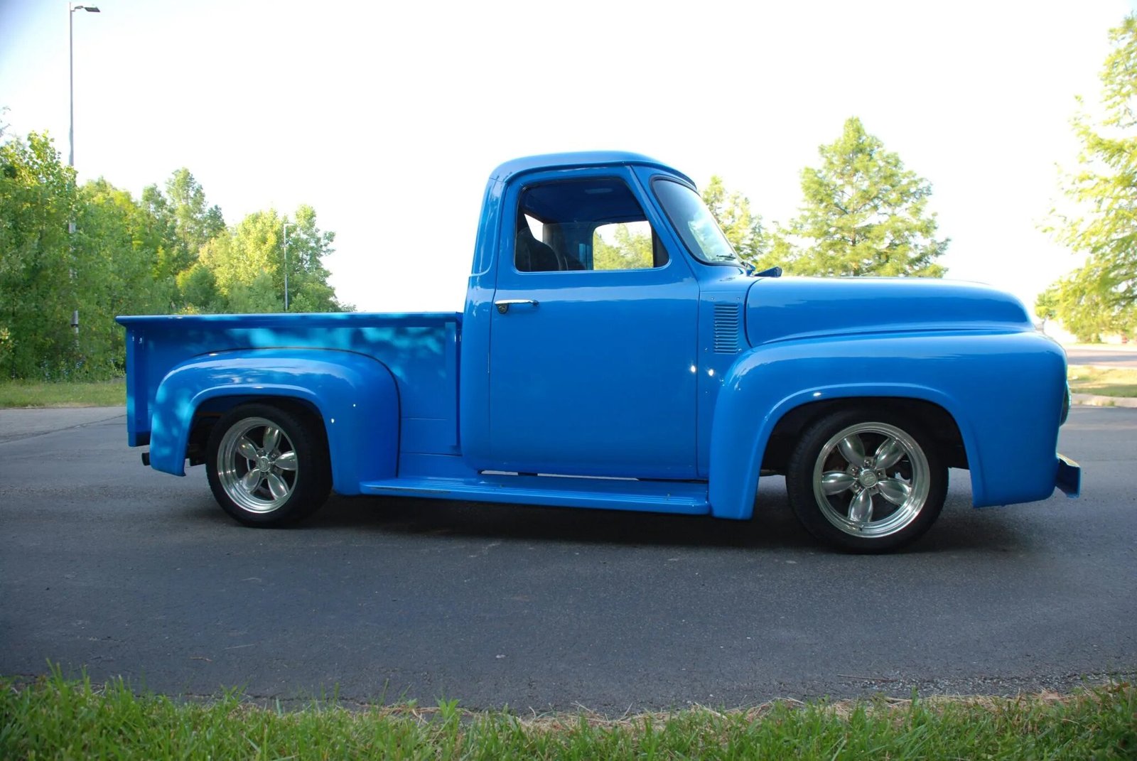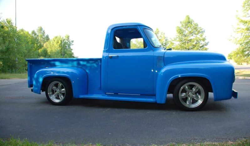 This 1953 Ford F-100 subsequently underwent a cosmetic and mechanical refurbishment that included replacing the bed and body panels before a repaint in blue along with installing a 429ci V8 linked to a rebuilt four-speed manual transmission.