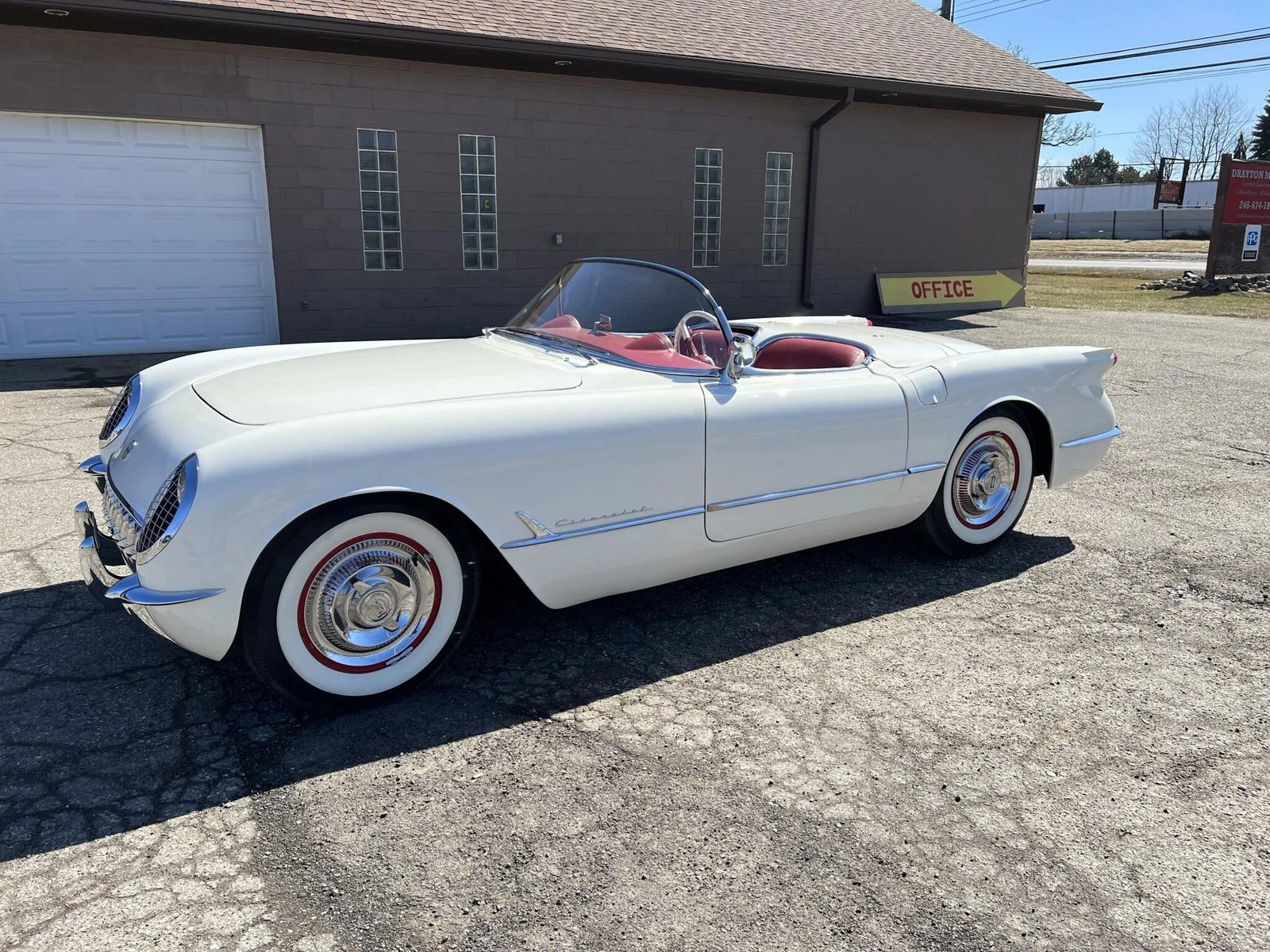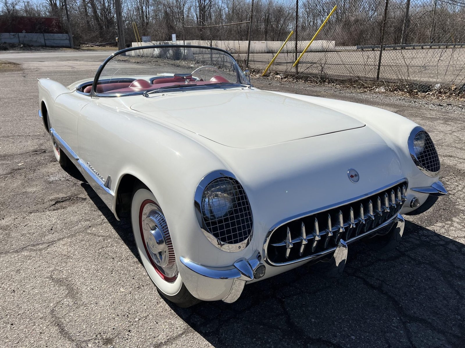 The car is finished in Polo White over red vinyl upholstery, and power is provided by a 235ci inline-six paired with a two-speed automatic transmission.