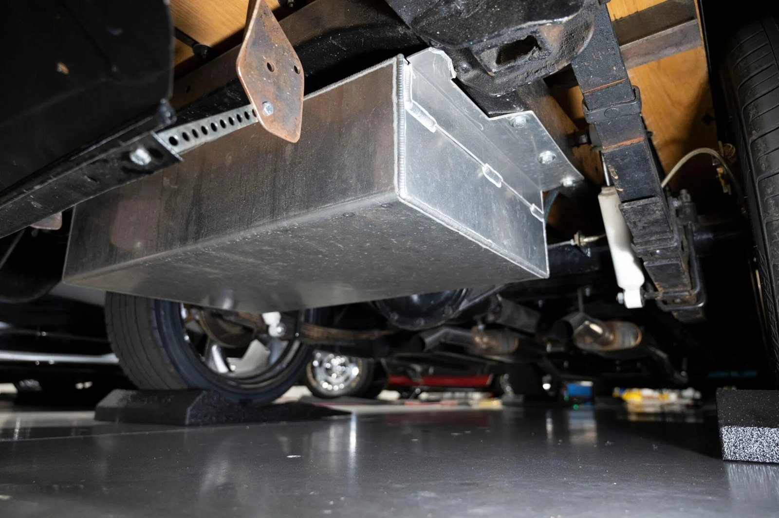 Power is sent to the rear wheels through a replacement 700R4 four-speed automatic transmission.