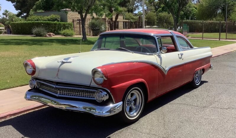 This 1955 Ford Fairlane Crown Victoria is powered by a replacement 312ci Y-block V8 paired with a four-speed automatic transmission and is finished in red and white over a matching interior.