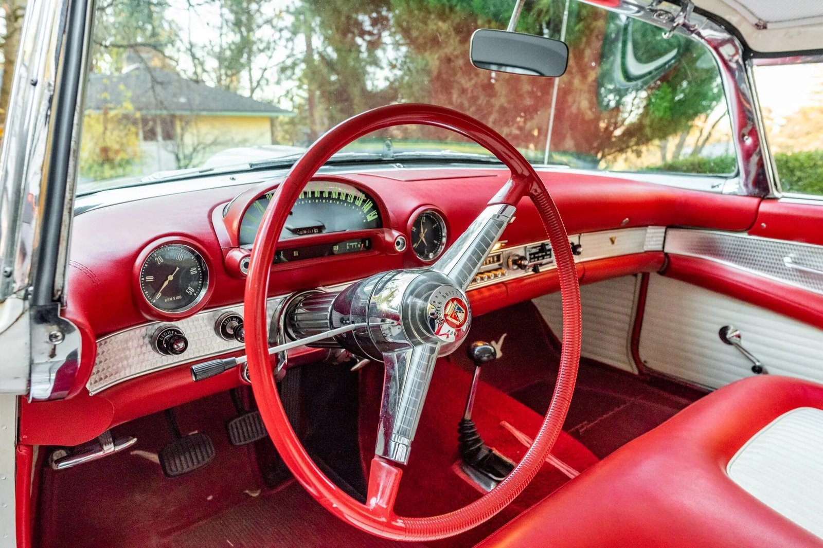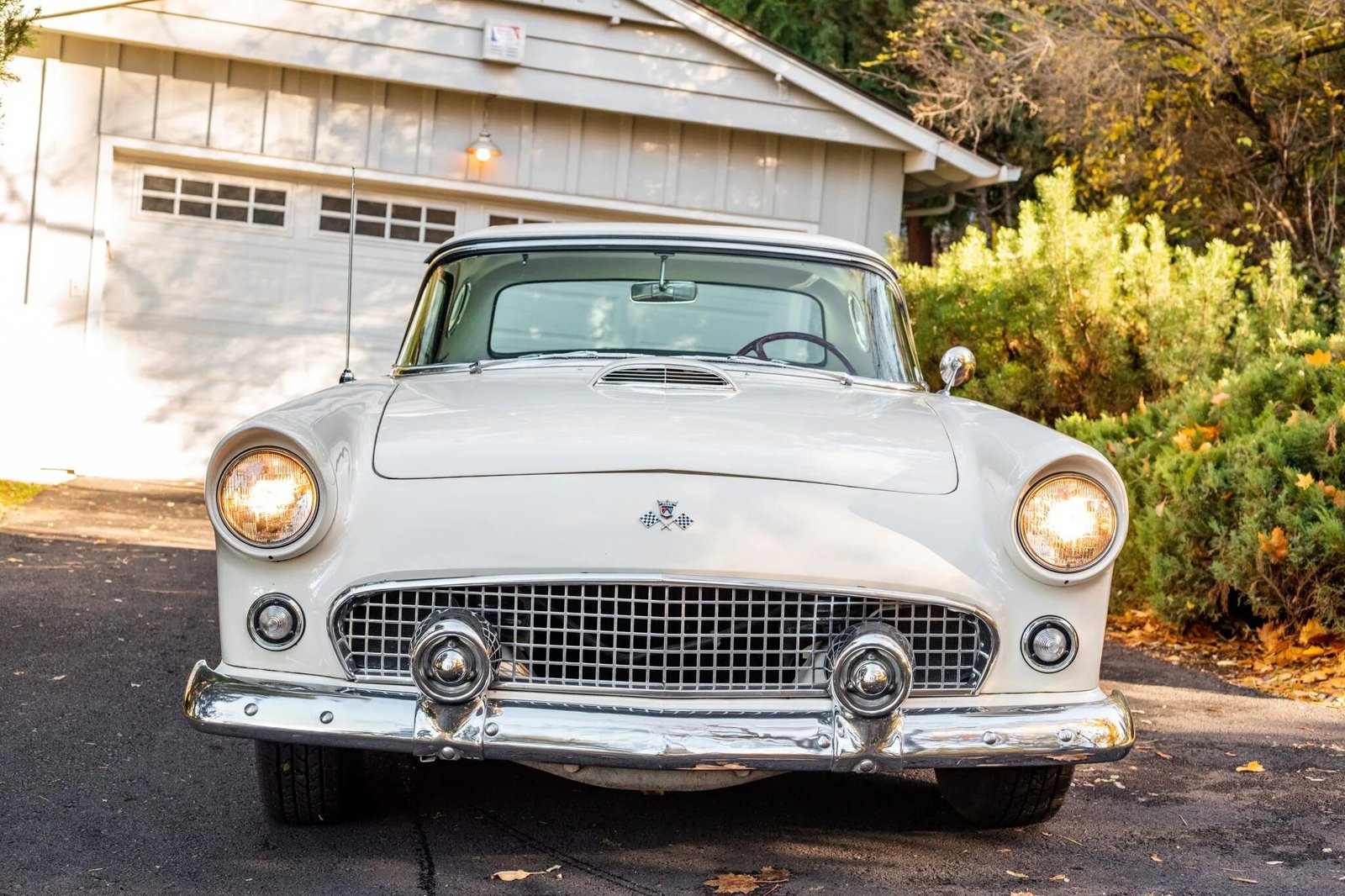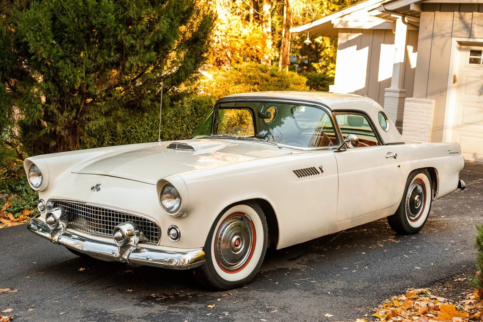 This 1955 Ford Thunderbird is powered by a 292ci V8 mated to a three-speed manual transmission with overdrive.