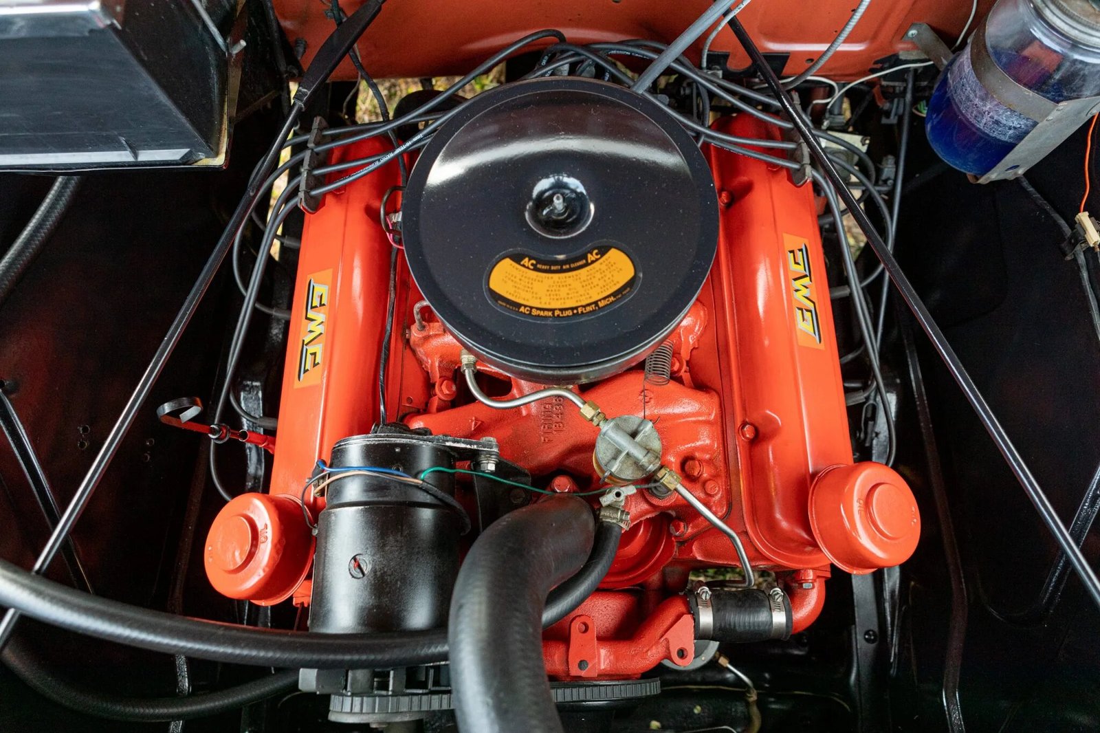 The Pontiac-sourced 287ci V8 features a single carburetor and was factory rated at 155 horsepower, which is sent to the rear wheels via a column-shifted three-speed manual transmission.