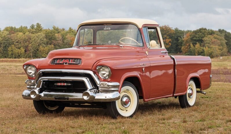 This 1955 GMC Suburban pickup was sold new by Sauder-Lygrisse GMC. A subsequent refurbishment have included a repaint in Seminole Brown, a frame refinish, and a refresh of the red and white interior. Power comes from a 287ci V8 paired with a three-speed manual transmission.